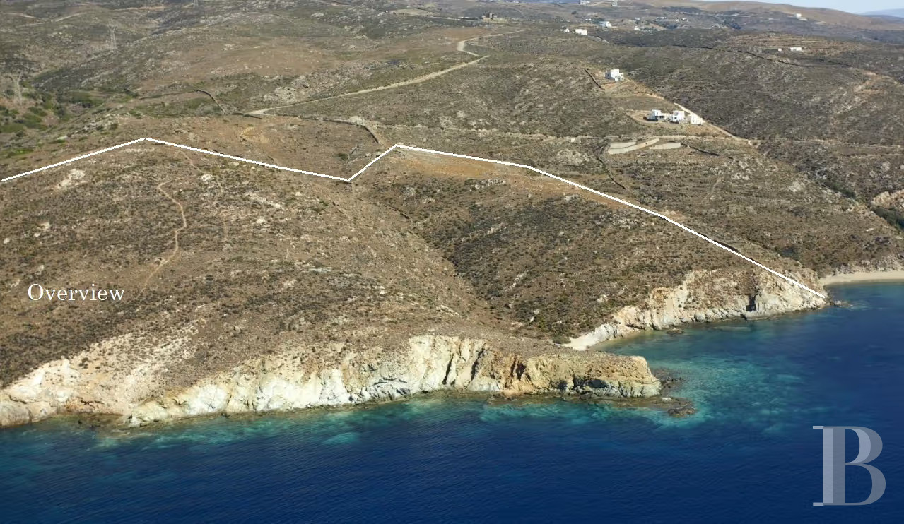 A unique seafront plot of land, whose rare size of nearly 9 hectares divided into three contiguous parcels and 60-metre sandy beach accessible only through the property, presents a singular opportunity on the west coast of Andros. The tranquillity, the natural dominance of the unspoilt land and the privileged coastal location offer complete seclusion without remoteness: Andros, an island in the Northern Cyclades accessible by ferry from Rafina, still has a largely undeveloped coastline and unspoilt mountainous landscapes.