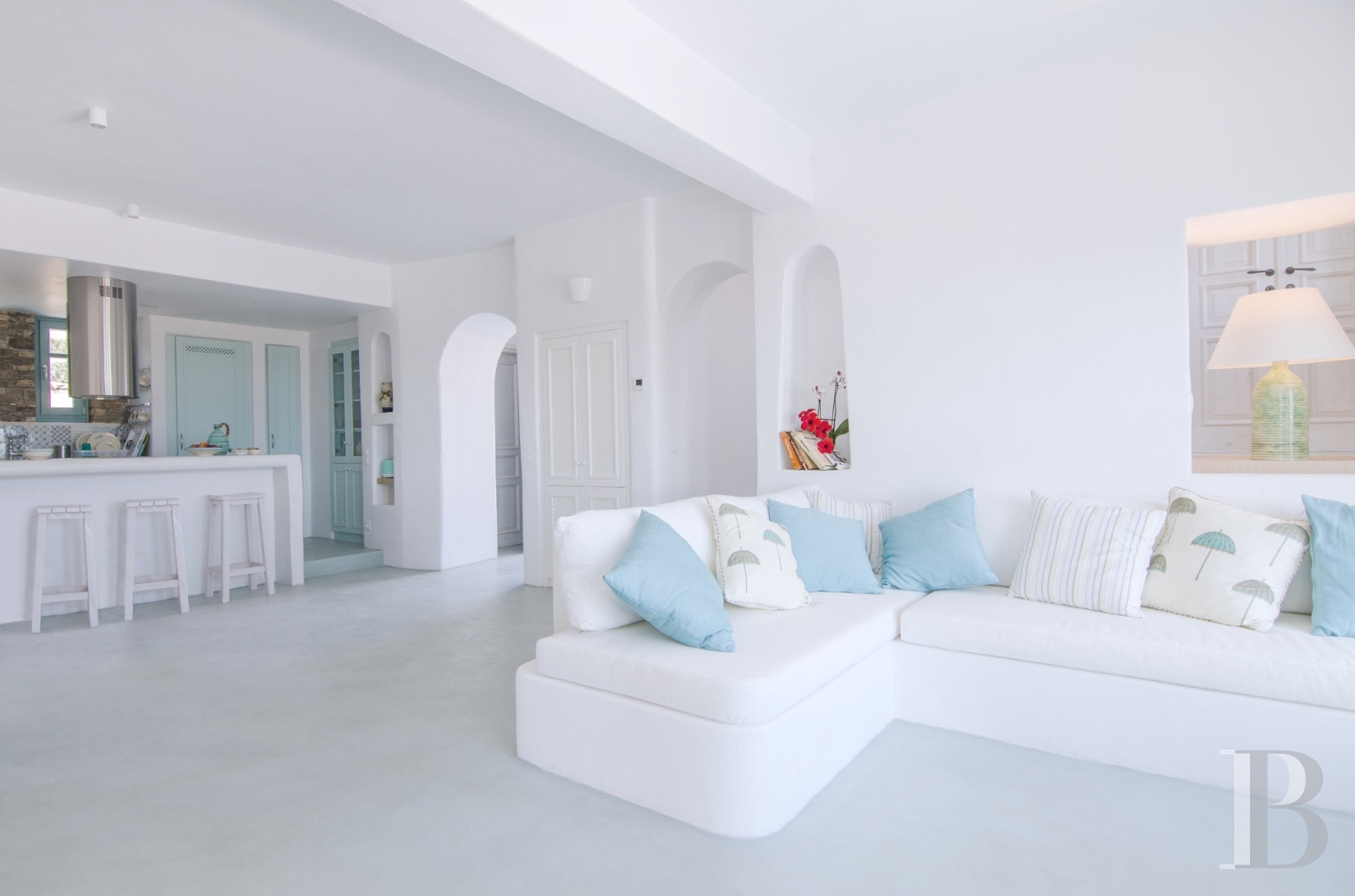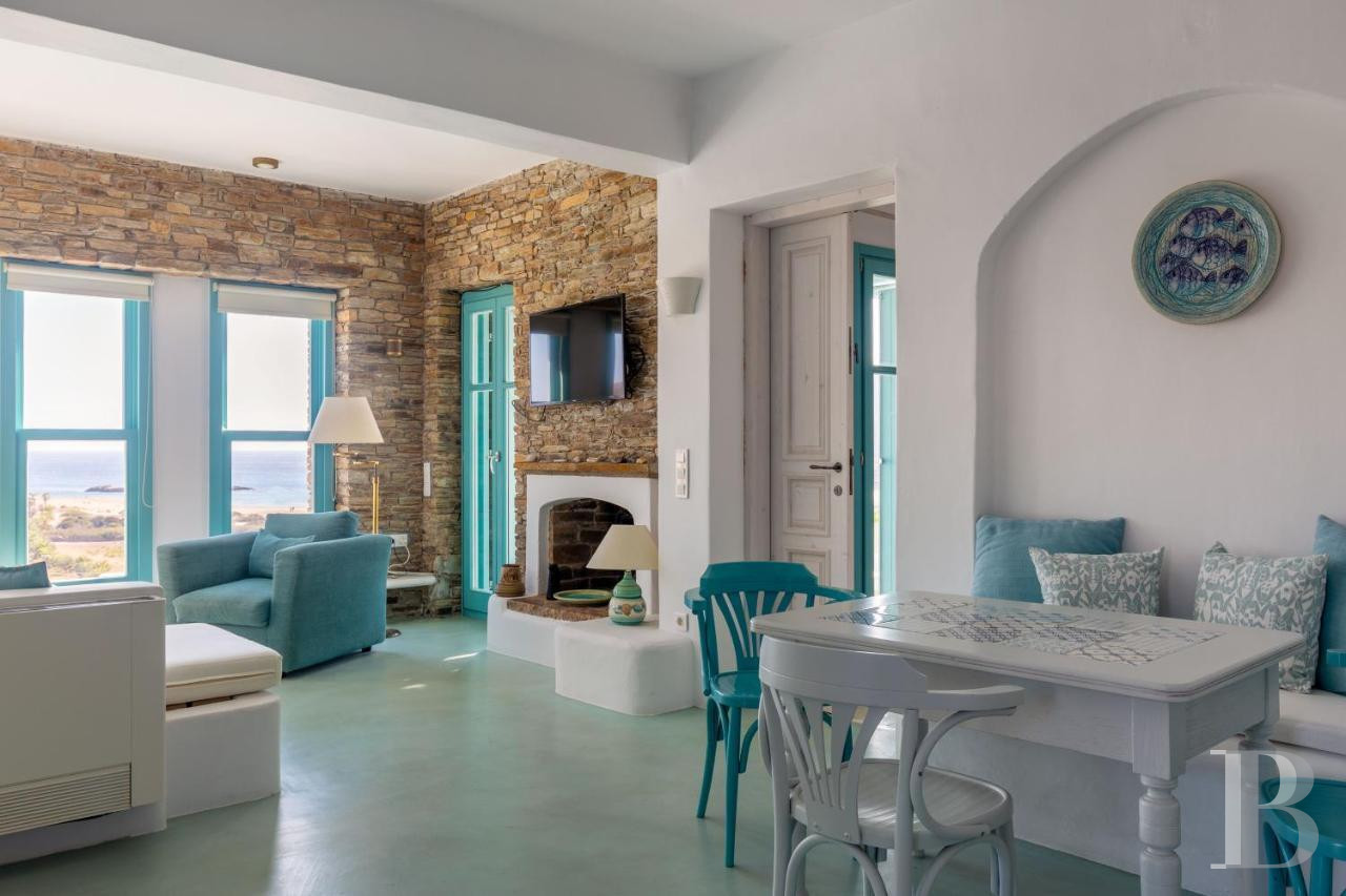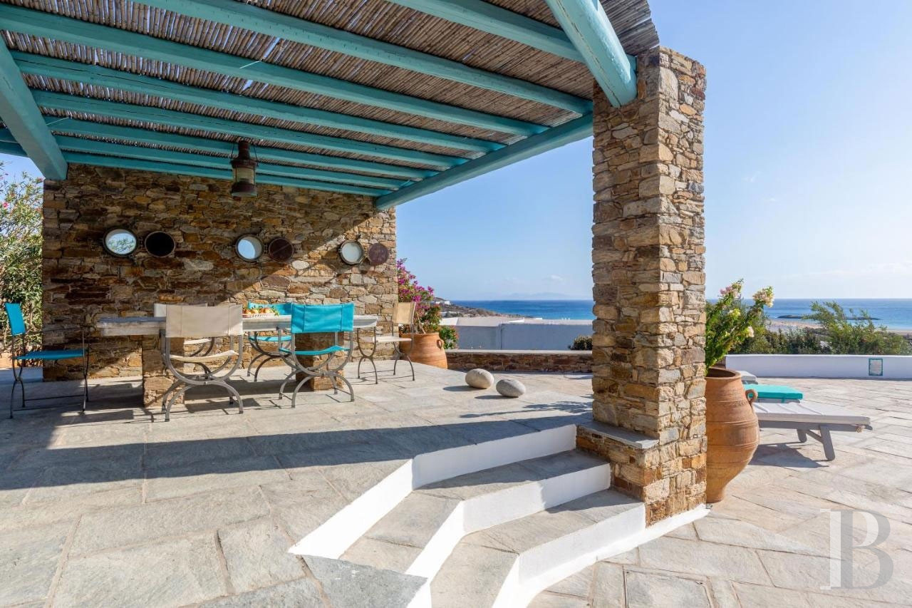Ios, once a stopover for ancient sailors travelling between Santorini and Paros, boasts Magganari Bay to the south of its rocky territory, a preserved cove where a few villas cling to the slopes facing the Aegean Sea. Built on 900 m² of south-facing land, this 200 m² residence has three master bedrooms with en-suite bathrooms on three separate levels. The Mediterranean garden descends in terraces towards the coves of Tripiti and Tris Ekklisies, accessible on foot via coastal paths that connect the deserted beaches of the southern part of the island. A property where contemporary Cycladic architecture blends unobtrusively with the landscape.