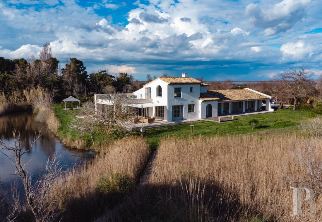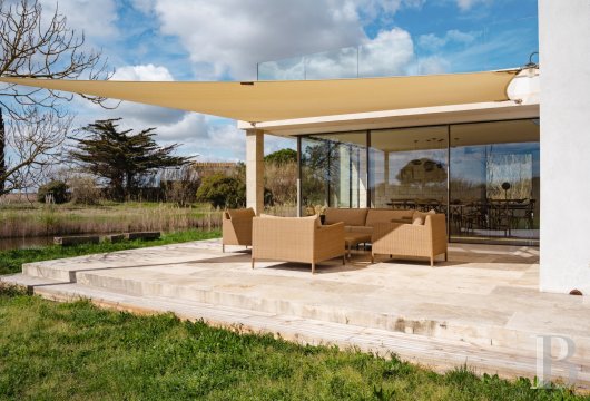 The Camargue is marked out, above all for its vast expanses of salt marshes and reed beds, ponds and pastures for horses and bulls. This natural landscape, whose strong identity permeates its inhabitants—who are proud of their land and their customs—is celebrated here through masterful architecture which, far from seeking to dominate its surroundings, blends into them with delicacy. With its low, slender shape, whitewashed facades and gently sloping canal-tile roofs, the Mas du Couvin embraces the colours and shapes of its surroundings, blending in seamlessly with the landscape to become a vantage point. Here, everything is designed so that nature is ever-present in every room of the house. The decor, too, is soft and full of warm, subtle tones, so as not to distract from the view outside. There is no doubt that anyone wanting to retreat from the busy outside world and to live by the rhythms of nature will find the ideal setting here.