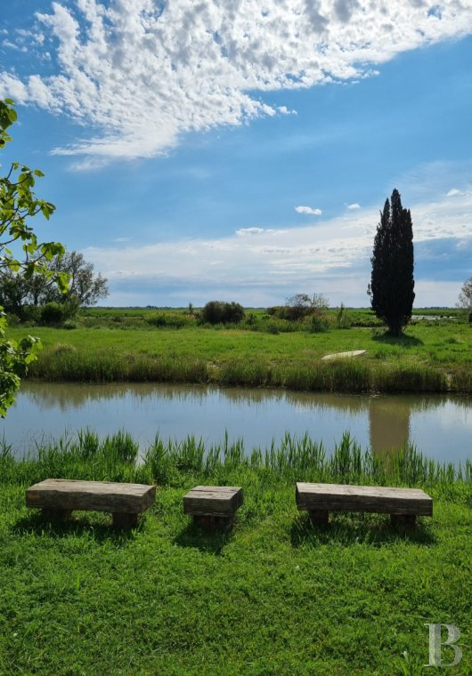 Set amidst two hectares of marshland, the Mas du Couvin is revealed along a discreet path, winding its way through reeds and Camargue vegetation. With each season, the landscape is transformed: the soft greens of spring, the deep ochres of winter, beneath the silent flight of flamingos. A raised swimming pool, seemingly levitating above damp ground, extends the view towards the horizon. Further on, a wooden cabin, on the edge of the ponds, welcomes the slow passage of time, between sunsets and conversations. Two terraces offer their own atmospheres: one geared towards relaxation, the other towards shared meals. Designed to be enjoyed as a whole house, the property welcomes families and friends with elegant simplicity, accompanied by the discreet attentiveness of their host.