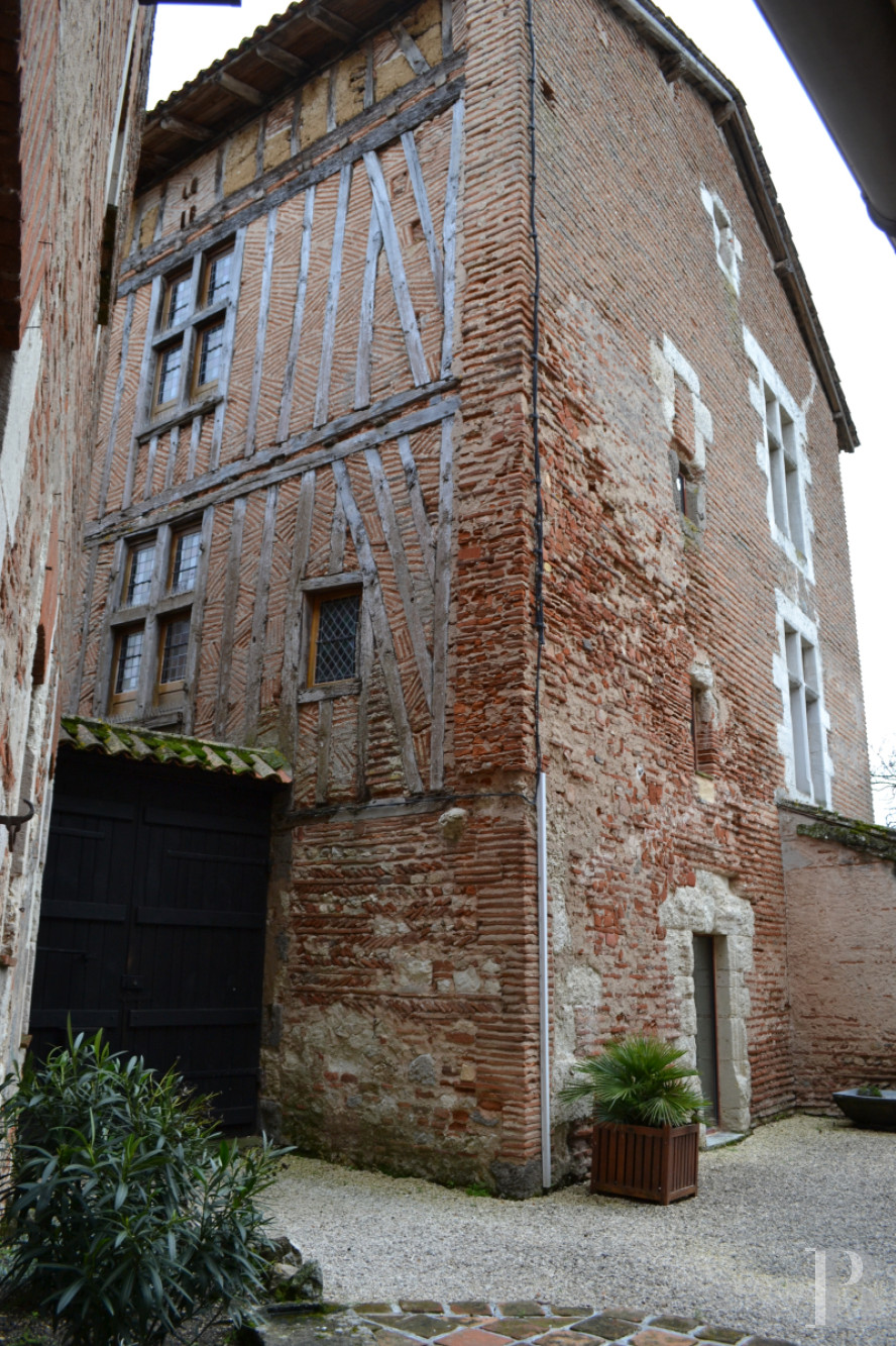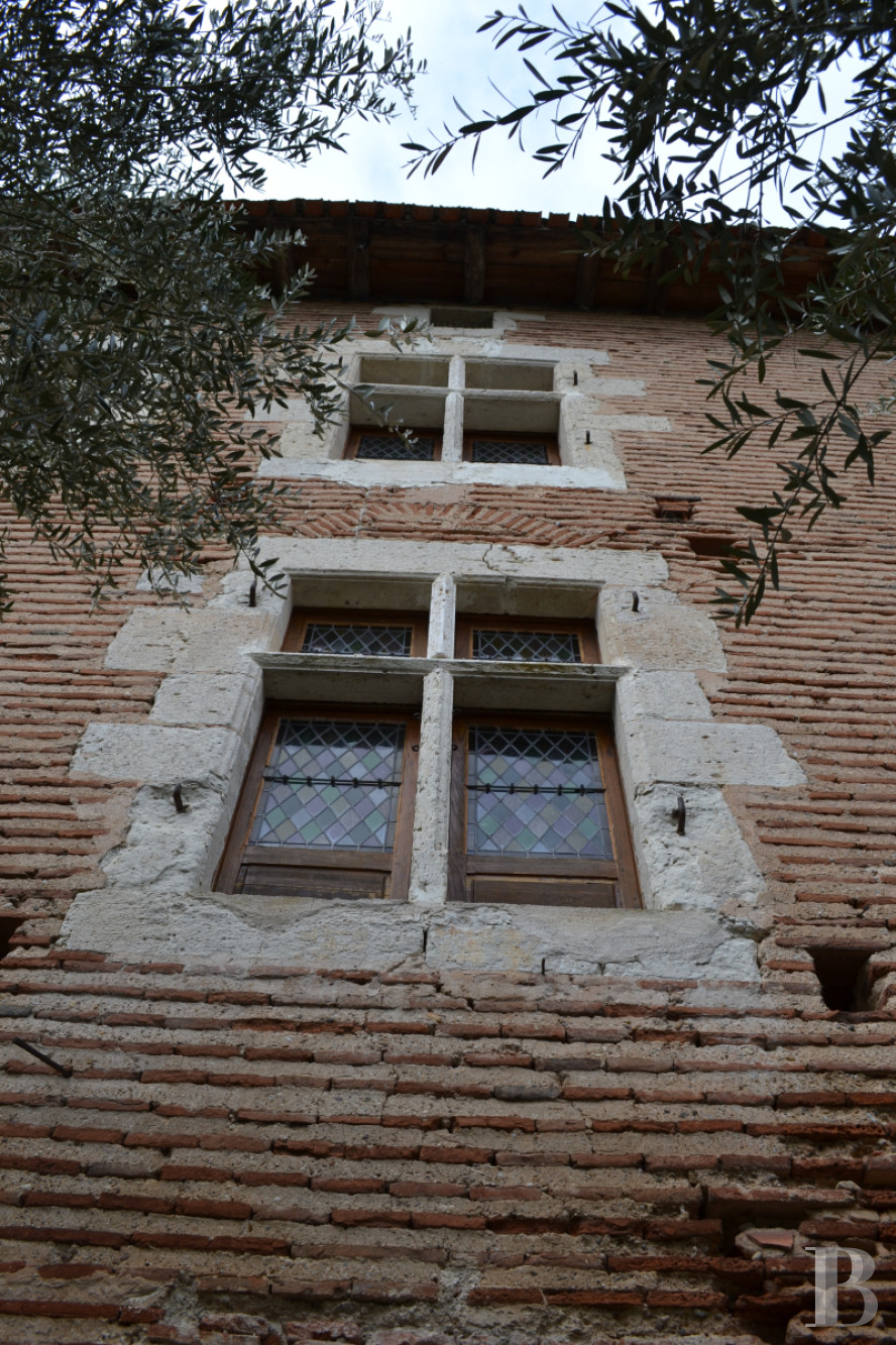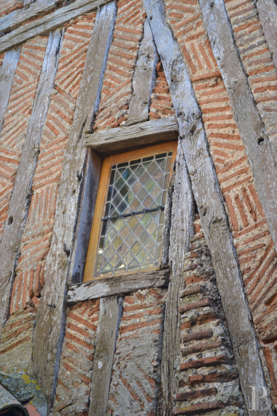 The property’s main house is one of the oldest in the town. Its very old walls are constructed from small faded pink bricks laid in horizontal rows. This residence has two entrances: directly from the narrow street via old double doors or from the entrance courtyard via a French window, featuring linenfold panels and dating from the 17th century.