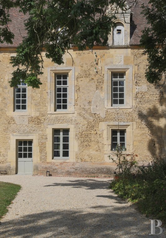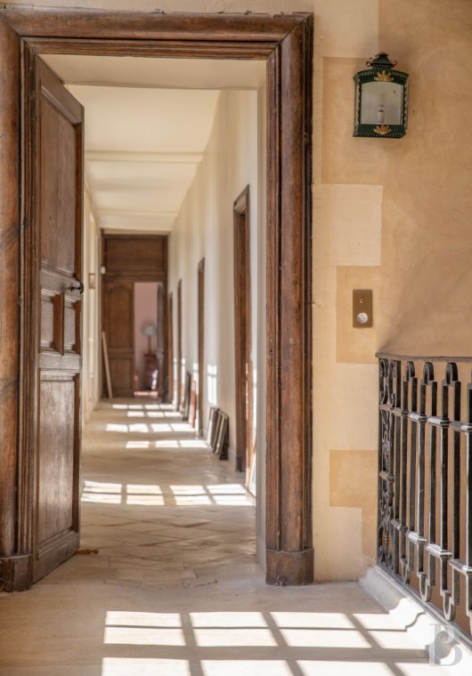 The Château de Grisy is actually a country manor house, with sober yet singular architecture that stands out in the region due to its lack of half-timbering and traditional rendered stonework. Its main facade of ochre stone, some 50 metres long, features huge windows that flood the interior with a maximum of light. Its elegant silhouette is characterised by a large tiled roof on the oldest part and a slate roof on the wing built in 1728. Nestling in a green setting, the estate comprises two walled hectares with several buildings, including a farmhouse converted into a gîte, a small garden, as well as an orchard and a pond that are listed as Historic Monuments. Inside, a staircase with a wrought-iron banister is listed as a Historic Monument.