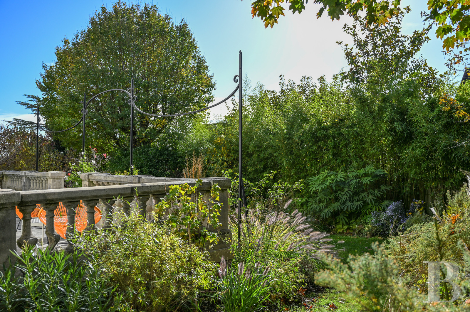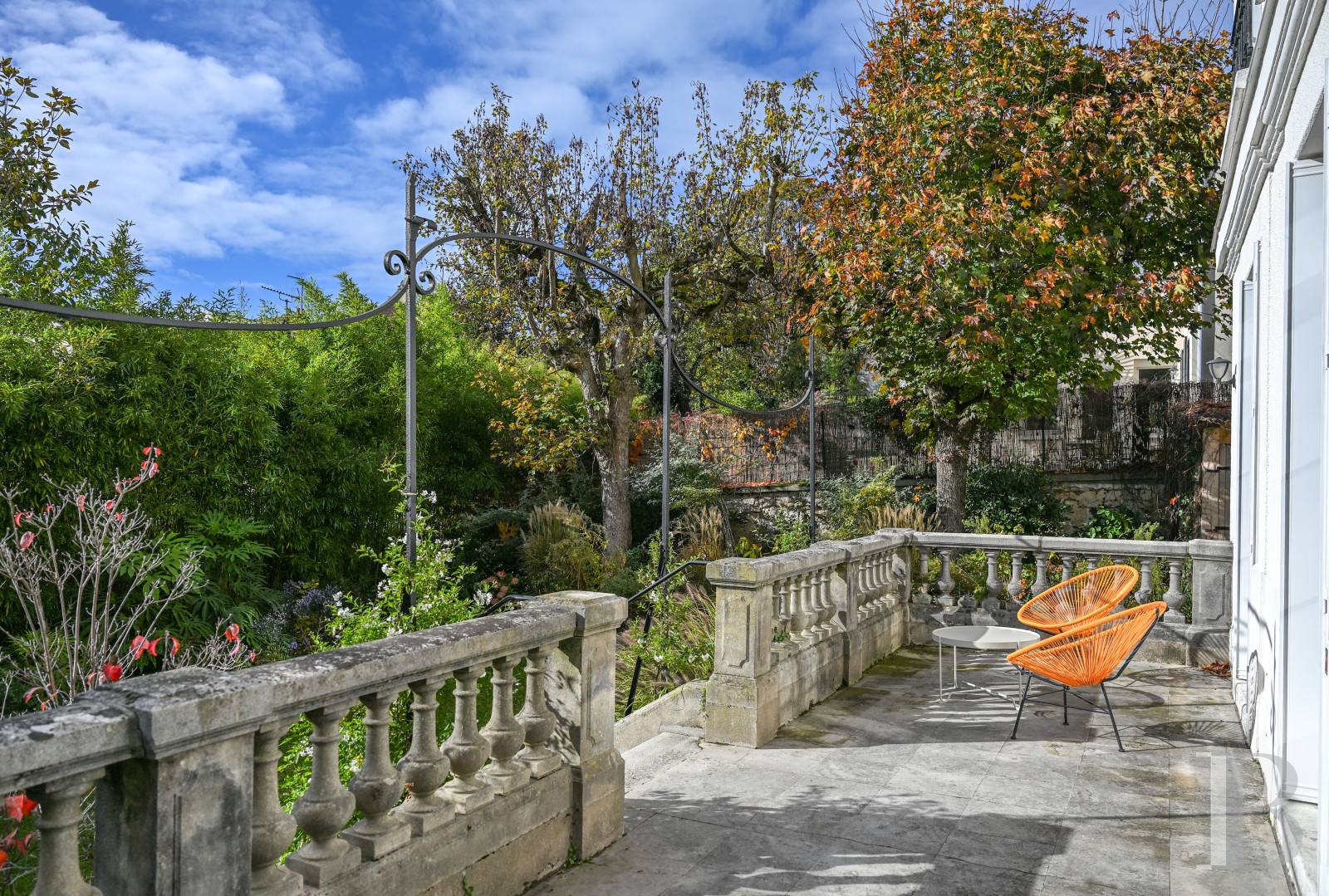 Sheltered from view, the garden was landscaped by a professional and is accessible via either a stone patio, surrounded by an original stone balustrade, or directly from the property’s entrance on the other side of the house, where a courtyard surrounded by vegetation, trees and shrubs, chosen for their contrasting foliage, can accommodate up to three or four vehicles. Finally, an outbuilding contains a studio flat with a small kitchen, a shower room and lavatory.