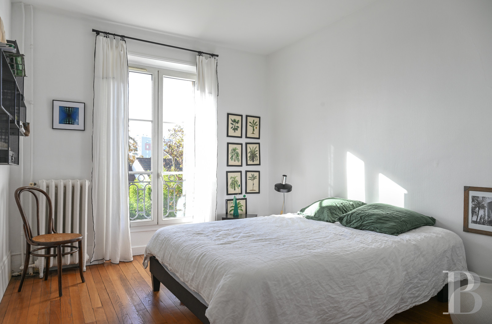 A spacious and sunny landing, lined with built-in cupboards under the staircase, precedes the rooms on this level. With mitred Herringbone or straight-plank hardwood floors depending on the space – except for the shower rooms – the volumes to the south enjoy breath-taking views of the nearby gardens, while the main bedroom includes a white marble Louis XVI fireplace, topped by a chimneybreast with graceful lines.