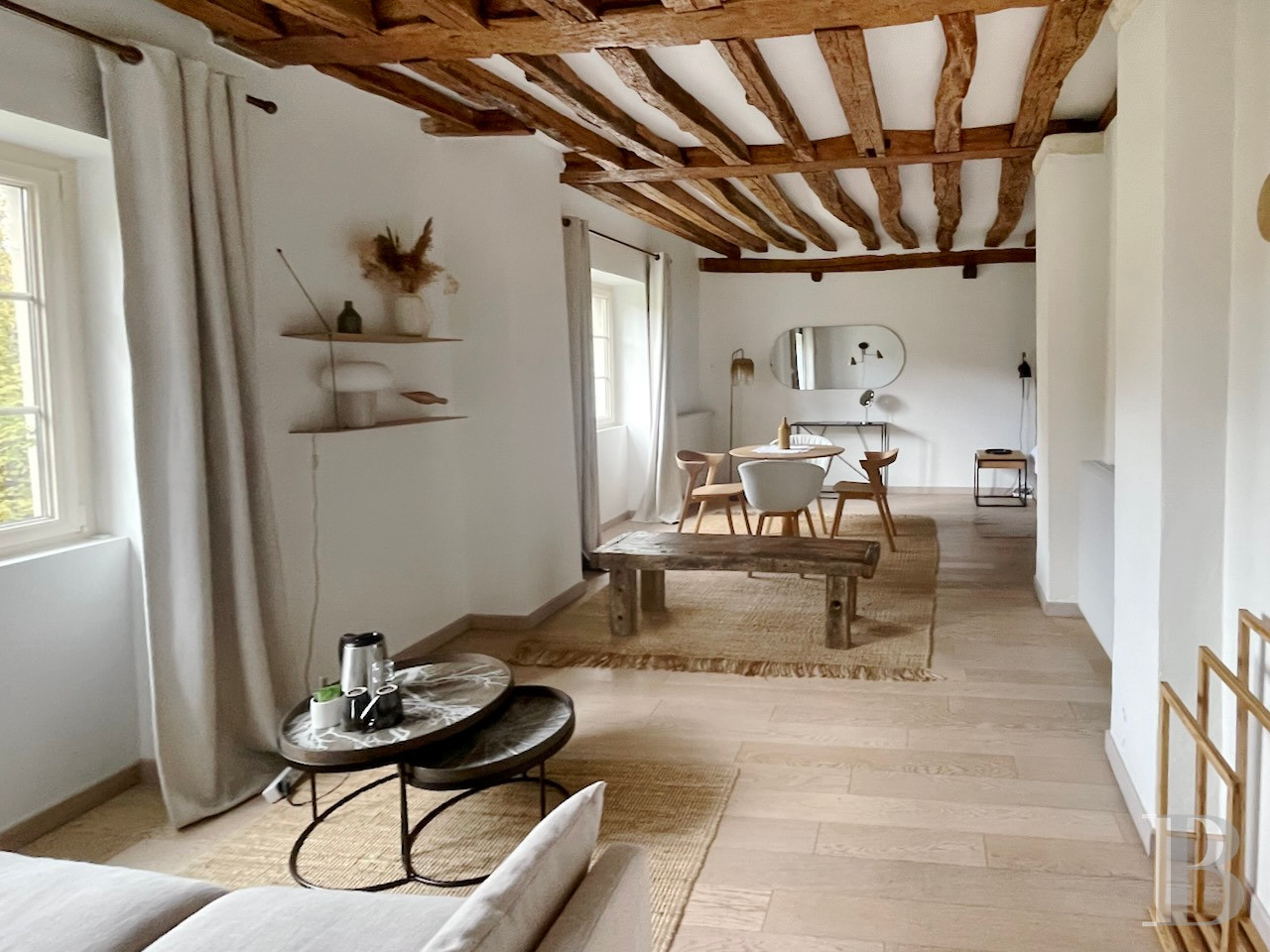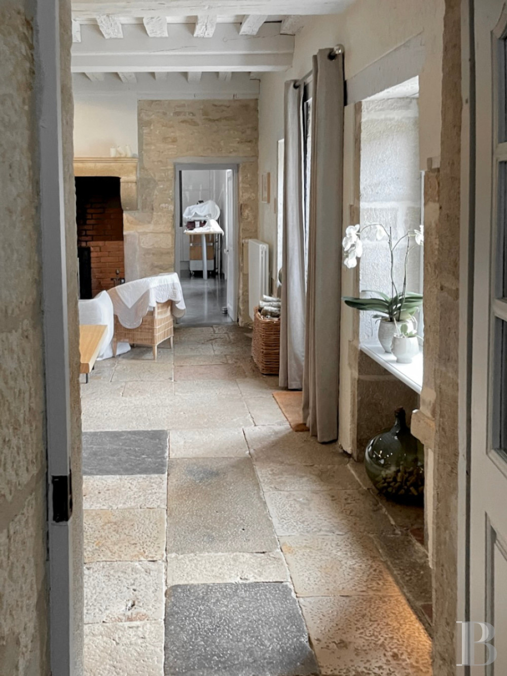 The stable stands out for its raw state, with stone walls and floors, a French-style beamed ceiling and a mezzanine upon a wooden floor. A basic timber staircase leads up to the first floor, where a door leads straight to the street, so you do not have to cross the court.