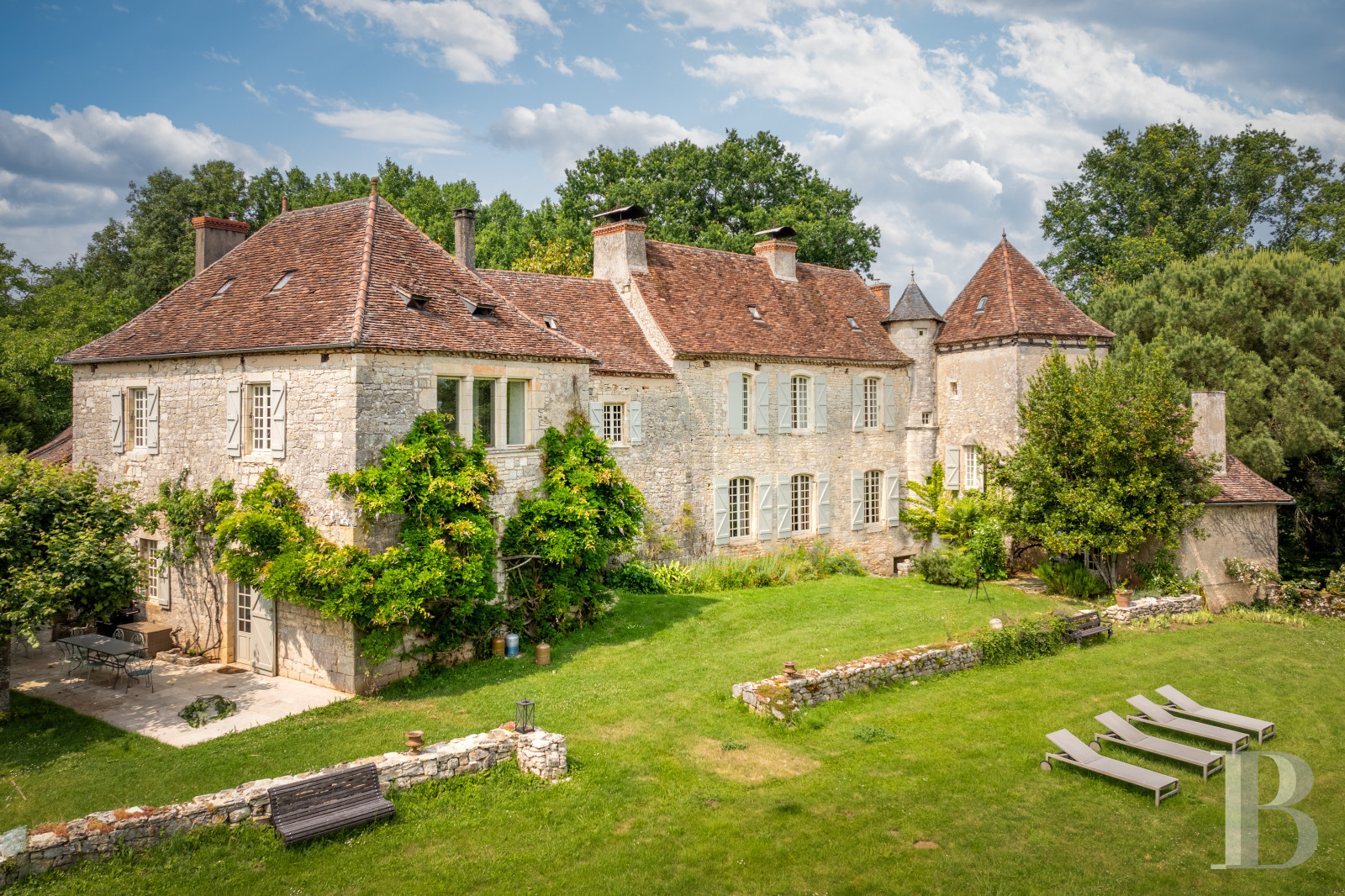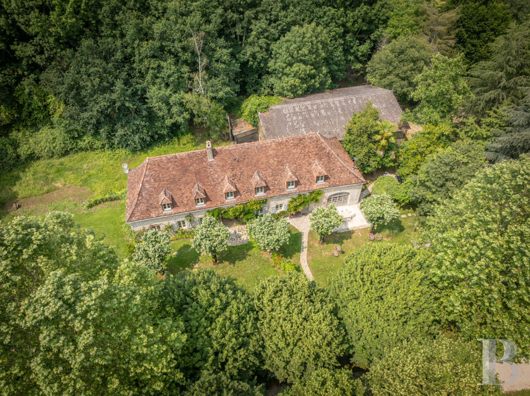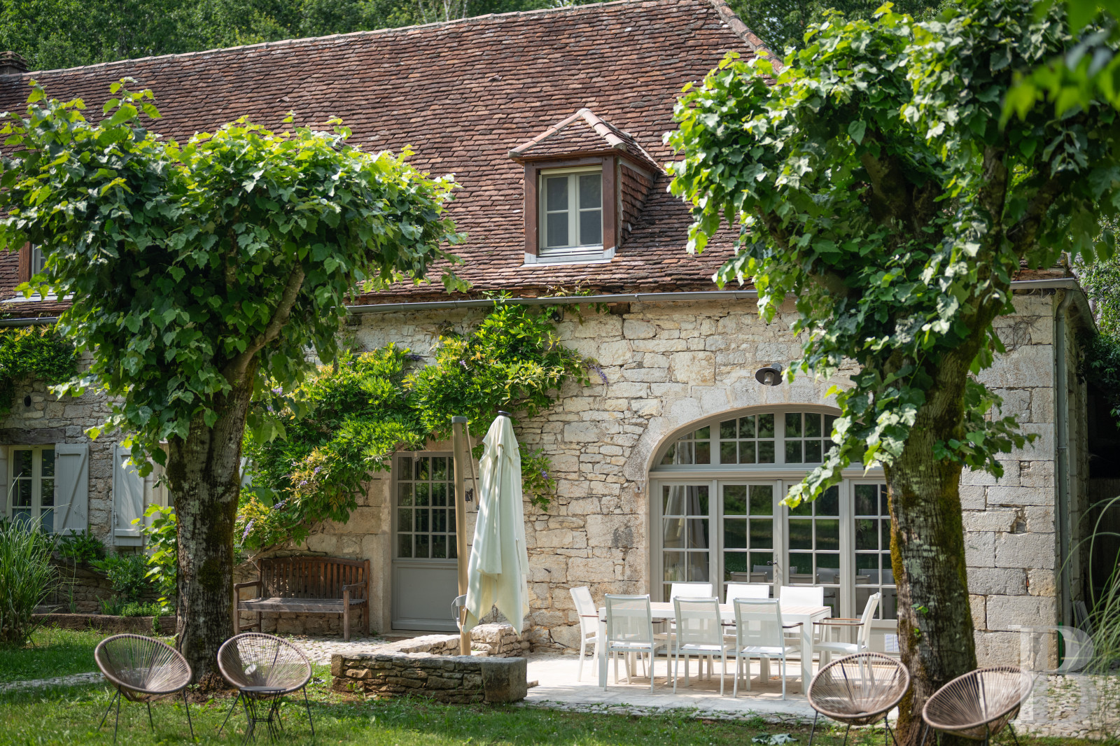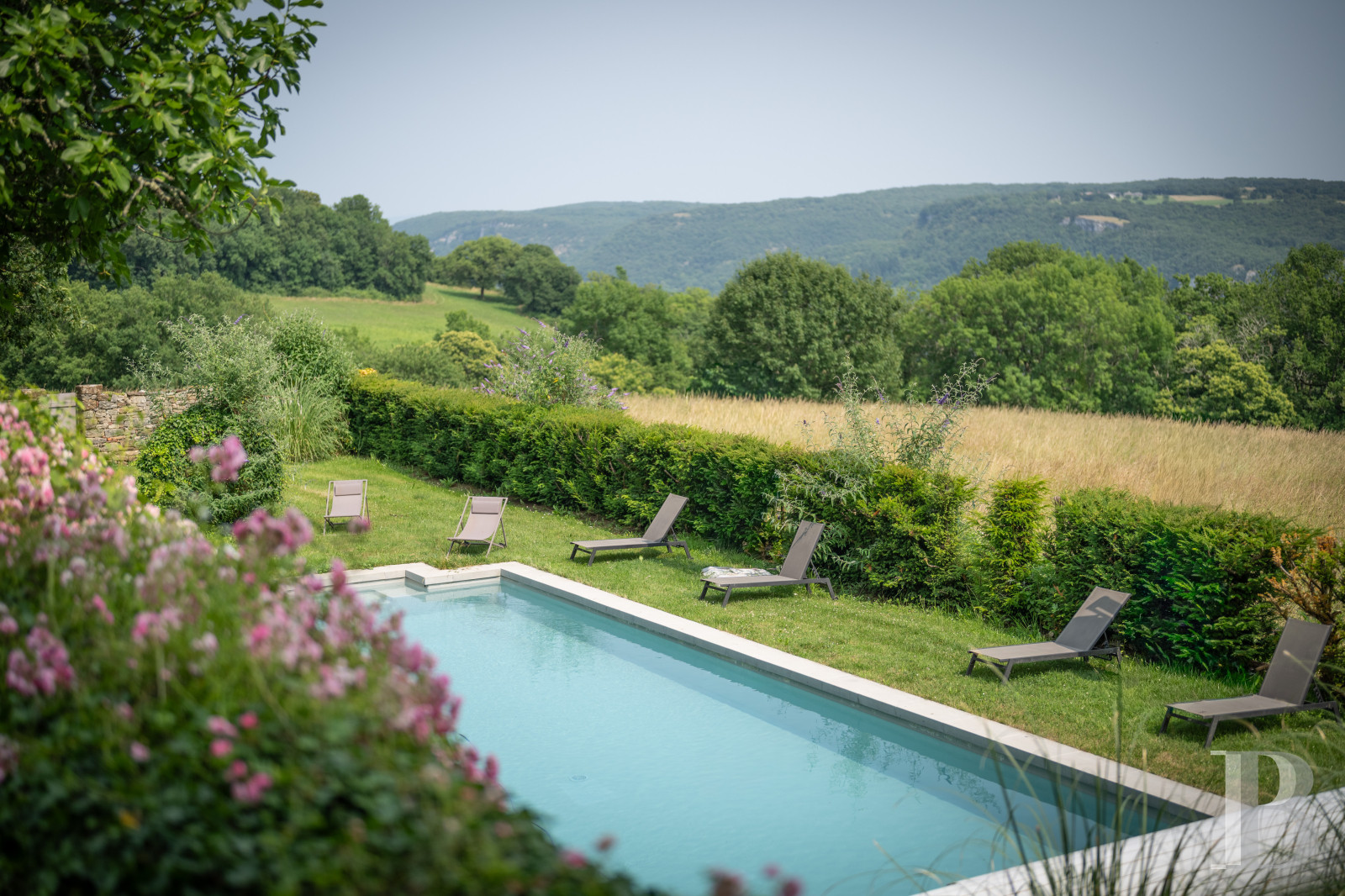 Around the residence, the terraced garden is made up of a harmonious mixture of lawns, fragrant flowers, dry stone walls and a variety of trees. Inside the walls, a swimming pool has been discretely incorporated into the lower terrace, blending into its surroundings and preserving the privacy of the place. Beyond the walls, there are an orchard, a vegetable garden, a wood, several old trees - even hundred-year-old ones – and, watching over the valley, a 13th-century dovecote whose private and discrete access contributes to the unique character of the estate.