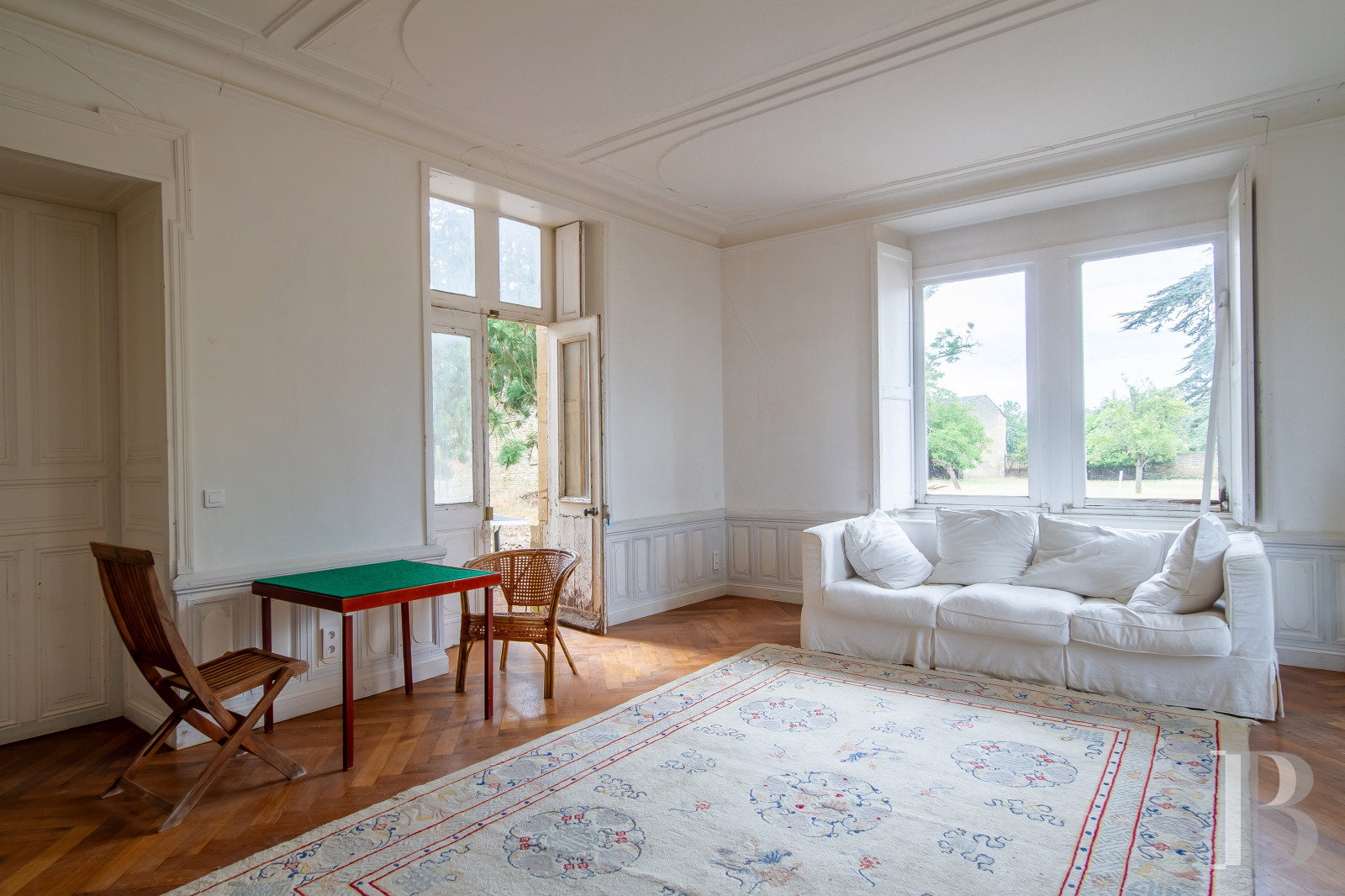 Dans la Vienne, un domaine à l'histoire millénaire, entre la cité ducale de Thouars et la ville médiévale de Loudun. Sous la houlette de passionnés de vieilles pierres, le logis du 13e s. a d'ores et déjà retrouvé son lustre d'antan. Les vastes espaces intérieurs, éclairés de nombreuses baies, présentent des éléments décoratifs d'époque remarquables, ainsi que tout le confort moderne. La maison du 19e s. demandera quant à elle des travaux de rénovation, mais affiche des volumes prometteurs. Depuis l'intérieur, la vue porte au loin sur les grands arbres centenaires et le parc de la propriété, idéale pour un projet familial ou événementiel.