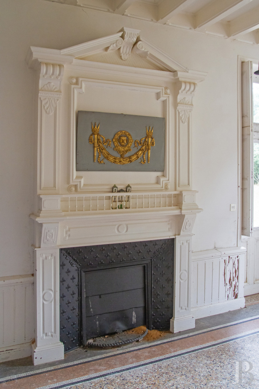 Une large entrée distribue un salon, un bureau, une salle à manger et un couloir qui dessert des toilettes et une cuisine. Les murs du salon sont percés par de larges baies orientées vers le jardin. Une cheminée en marbre est adossée à l'un des murs. Une porte communique avec le bureau. Dans la salle à manger, une cheminée attire immédiatement le regard par son ambitieux décor. Enfin, s'étendent la cuisine et une arrière-cuisine. L'ensemble des sols sont parquetés, à l'exception de la cuisine et de l'entrée, dallée d'une mosaïque et d'un terrazzo.