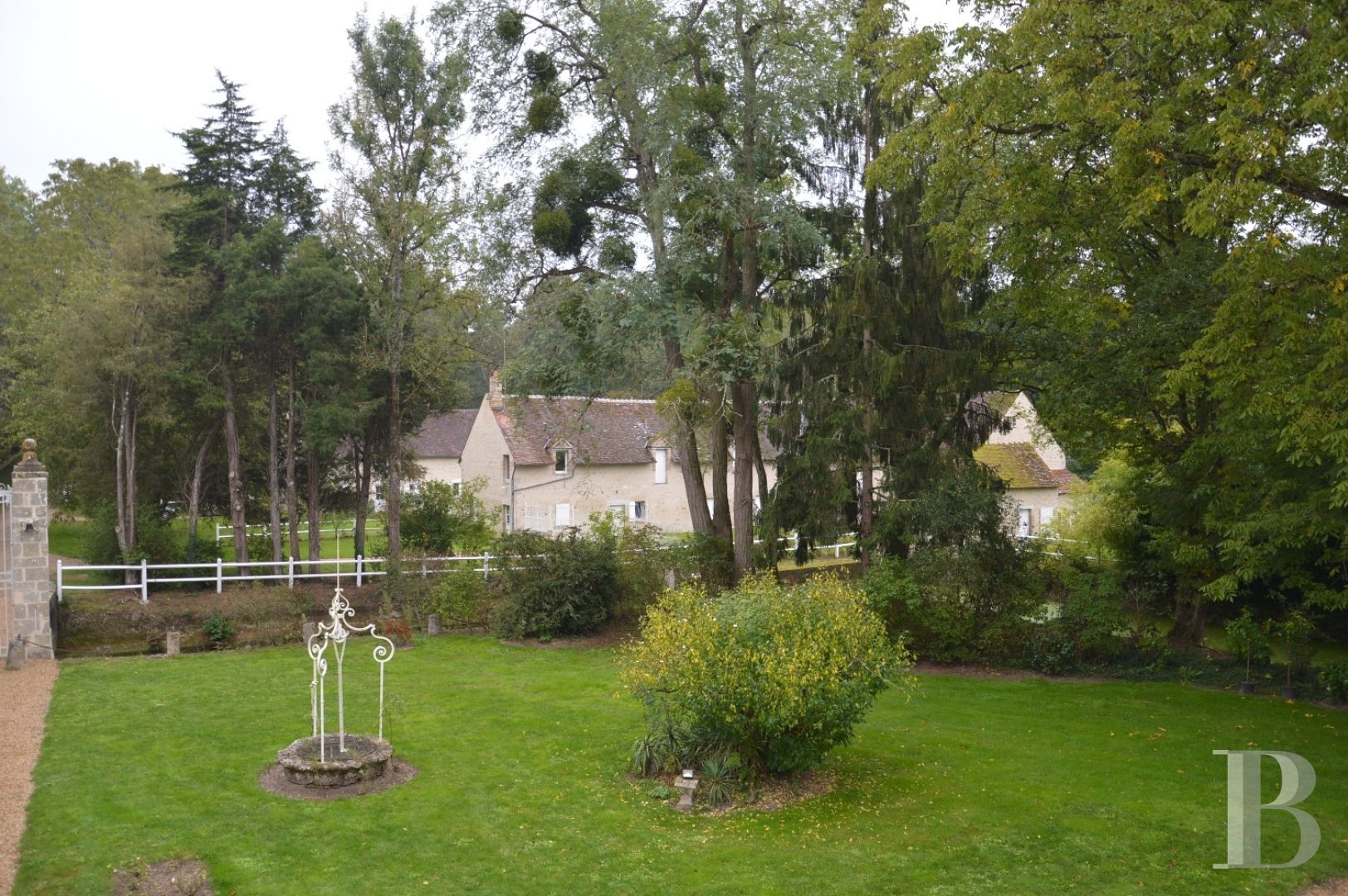 De plan massé, il est composé de deux longères traditionnelles et deux granges d’environ 140 m². Les murs sont en pierre apparente et les toitures en tuiles de pays. Le logement de gardien et le pavillon d'amis, avec ses deux grandes cours fermées par grille, d'une superficie totale d’environ 160 m², réunissent chacun une salle de séjour, une chambre, une cuisine et une salle de douche avec toilettes. Le chauffage est au fioul et électrique.