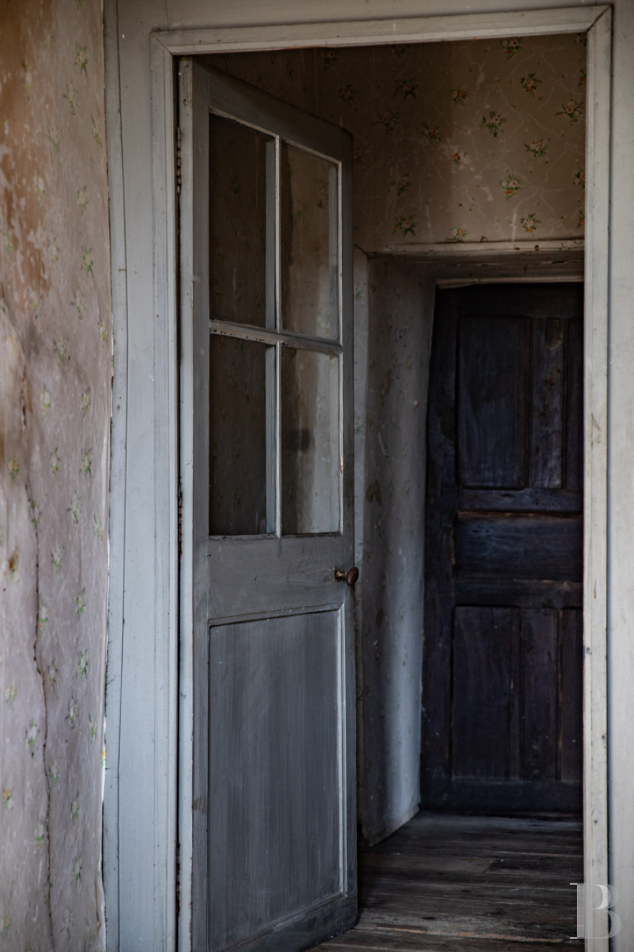 L’extension du 19e s. dispose d’une seule chambre à ce niveau. L’accès se fait par l’escalier en bois du vestibule. La lumière est traversante. Les murs sont colorés et le parquet est authentique. À l’opposé, au-dessus de la cave, un escalier monumental en bois du 17e s., mène à un espace composé d’un palier de nuit, de trois chambres et d’une salle de bain avec des toilettes. Les boiseries donnent du caractère au lieu. La chambre "verte" et la chambre "rose" sont spacieuses. Le torchis se devine sous les anciens papiers peints encore présents. Chacune des chambres dispose d’une cheminée, dont l’une est en granit. Les portes sont en bois, pleines ou semi-vitrées. Une partie du parquet est de type versaillais. Une chambre conserve son petit cabinet de curiosités.