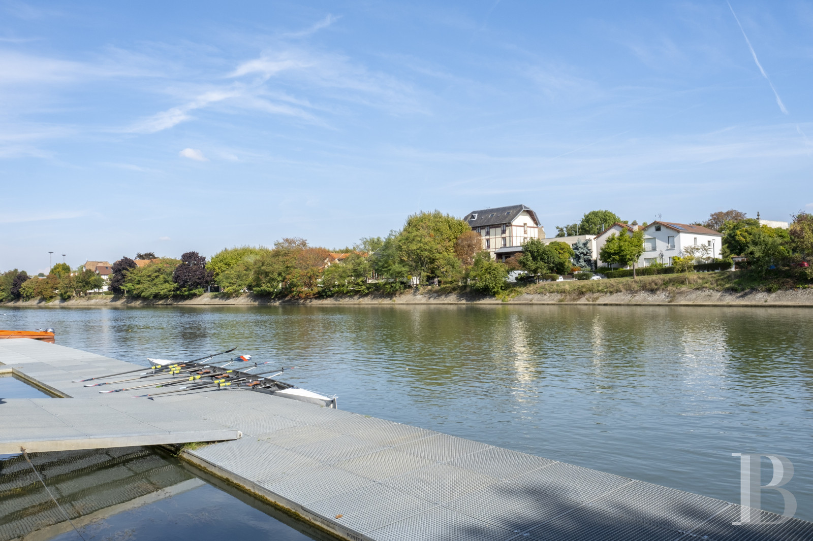 L’expansion urbaine de la capitale concourt à la renaissance de l’île Fanac, qui se trouve à Joinville-le-Pont. Jadis nommée « île aux foins », elle appartenait aux moines de l’abbaye de Saint-Maur. Longtemps cultivée, son urbanisation ne se confirme qu’au 19e s. grâce à la ligne V, ligne de chemin de fer inaugurée en 1859, qui reliait La Bastille à La Varenne. Elle suivait les rives de la Marne, permettant aux Parisiens de se rendre à « la campagne » au bord de l’eau, pour y pratiquer des sports nautiques et se détendre dans les guinguettes avoisinantes, en trinquant à loisir, au-delà des limites imposées par l’octroi de Paris. L’île, aux décors bohèmes et champêtres, était prisée des artistes. L’écrivain Émile Zola y venait régulièrement et plusieurs de ses œuvres y auraient été inspirées. Aujourd’hui, les guinguettes ont été transformées en une école municipale des arts et de la musique. Les activités nautiques occupent toujours une place importante sur l’île, reconnue patrimoine national depuis 1965. Les résidences estivales de l’île Fanac sont devenues des habitations principales. La demeure se trouve à proximité du centre-ville, de tous les commerces et à quelques minutes à pied du marché. La gare de Joinville-le-Pont, desservie par le RER A, est à 10 min de marche de la propriété. Le centre de la capitale est accessible en seulement 30 min en voiture et à une quinzaine de minutes en transports en commun.