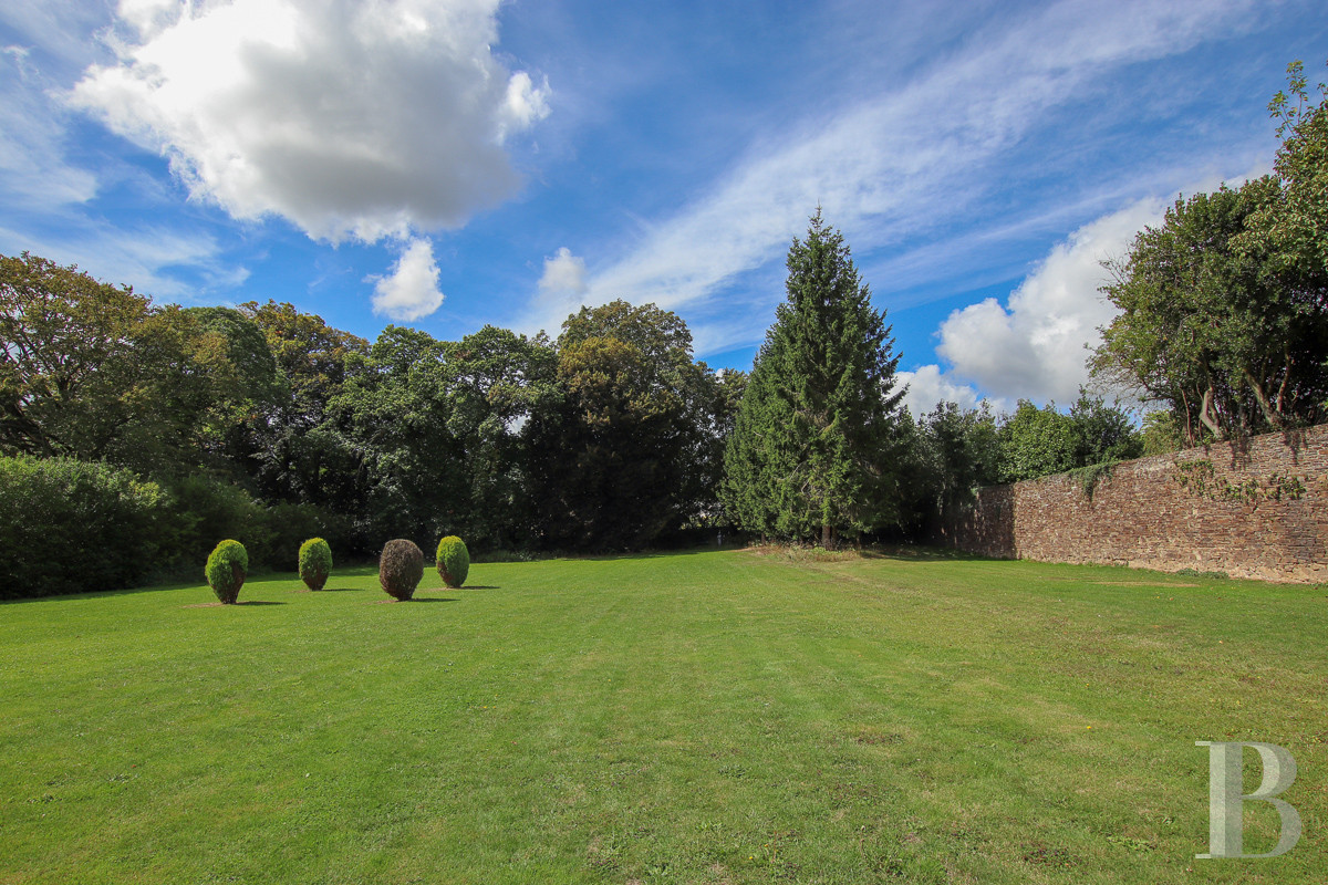 Close d'un épais mur d'enceinte en pierre, la propriété est notamment composée d'un jardin à l'anglaise et d'un jardin à la française, planté de châtaigniers, de tilleuls centenaires, de camélias matures et de cèdres majestueux. Protégé des regards extérieurs, l'ensemble profite d'une exposition globale plein sud et d'une situation dominante. Une piscine pourrait y être aménagée, puisque la parcelle est constructible. Un petit pavillon en pierre est édifié à un angle de la propriété.