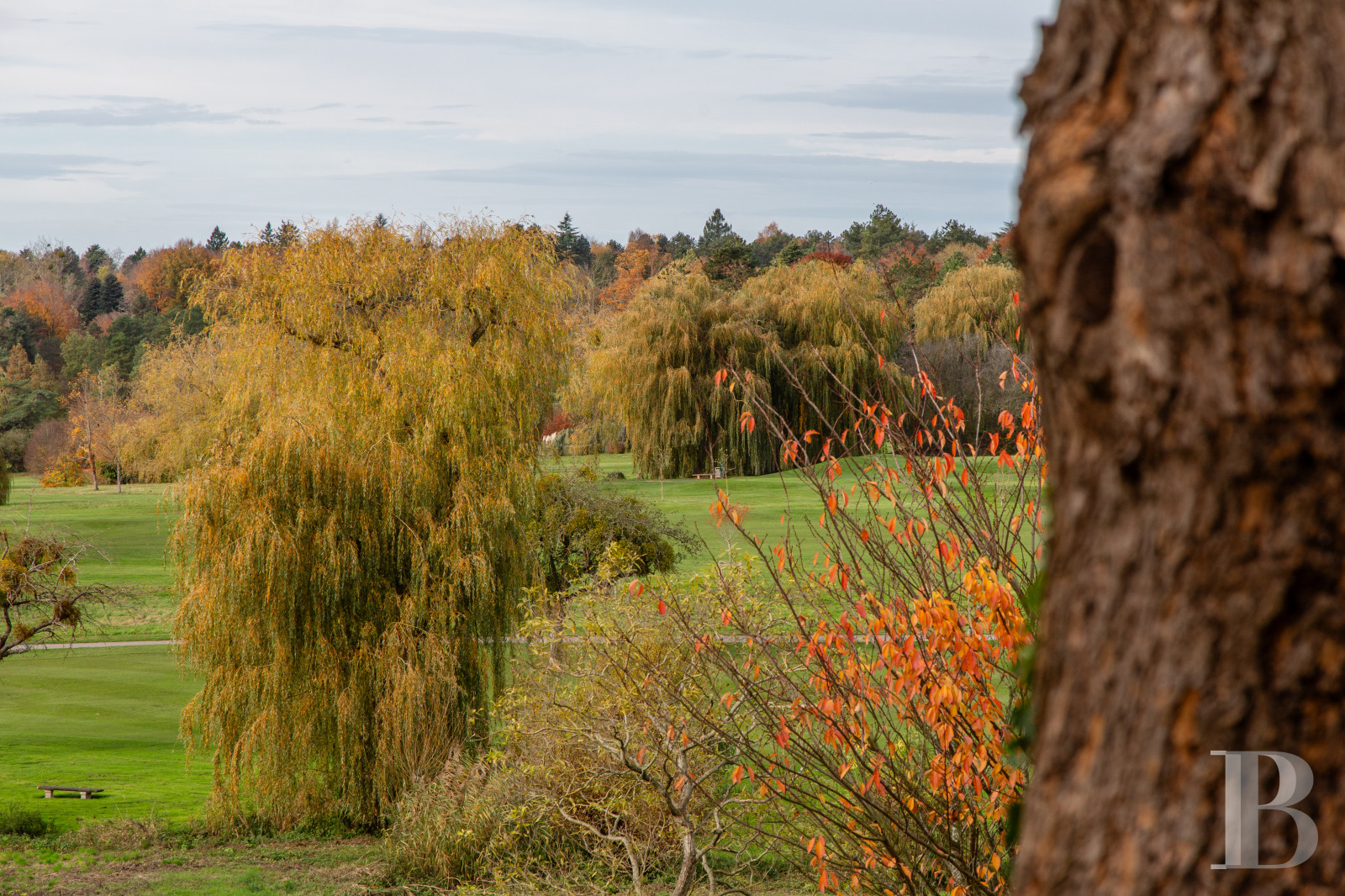 Autour de la maison s’étend un jardin non clos, totalement ouvert sur le golf de Saint-Nom-la-Bretèche. L'espace paysager, en pente douce, épouse la topographie du terrain et crée une transition fluide entre la propriété et l’immensité verdoyante du parcours. Le jardin enveloppe la demeure comme une parure végétale, donnant à chaque façade une perspective différente sur la nature environnante.