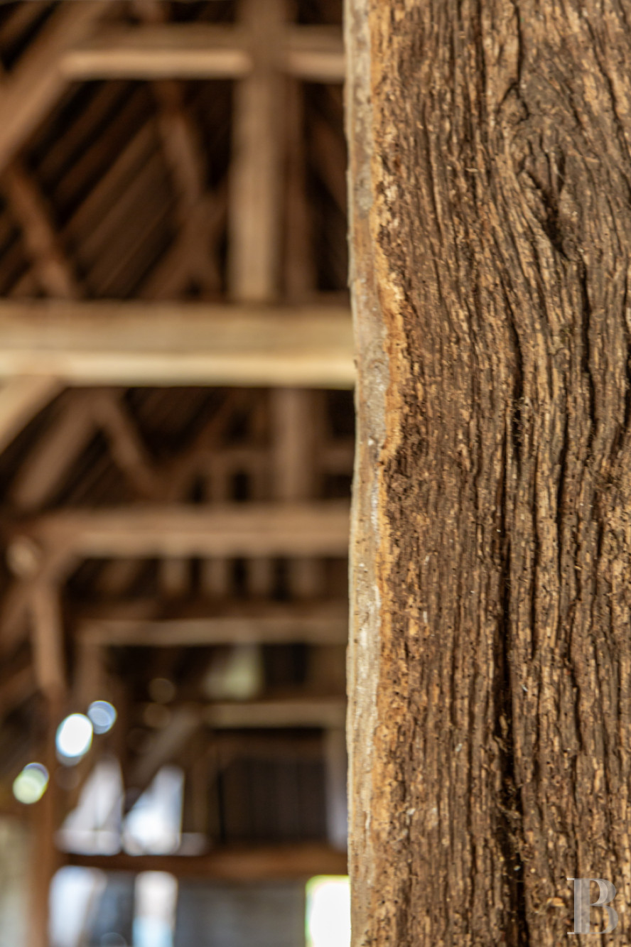 La répétition régulière des travées de la grange dîmière, qui crée une continuité visuelle et structurelle, caractéristique des grandes halles ou bâtiments ruraux traditionnels en bois, se fait témoignage fascinant du passé du lieu. Son volume remarquable et son ossature en chêne plusieurs fois séculaire permettent d'envisager, après réhabilitation, bien des projets en mesure d'honorer son leg.
