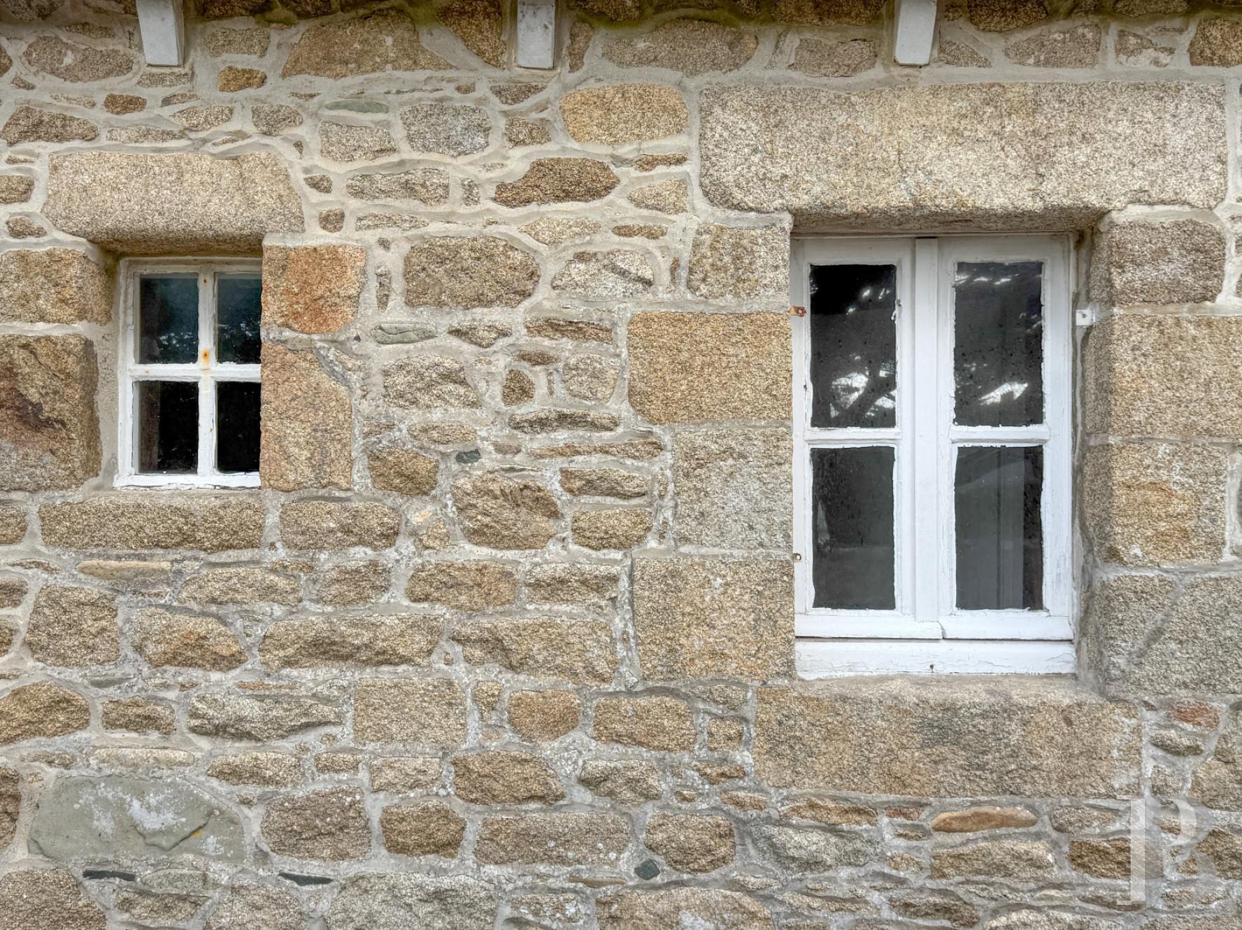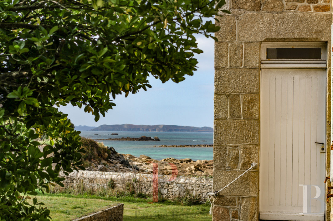 The property is accessible via a wide and open road, which leads to a small car park used by shore fishermen, hikers and Penvénan residents before continuing its trajectory towards the Dunes white sand beach, three minutes away by car. Nearby, the GR34 hiking trail winds its way along the coast, while the quiet neighbourhood in which the property is located alternates between main residences and second homes. Entirely surrounded by walls, the property is accessible via two entrances: a small white wooden gate as well as another larger gate, similar in style, which makes it possible to park several vehicles on the property.