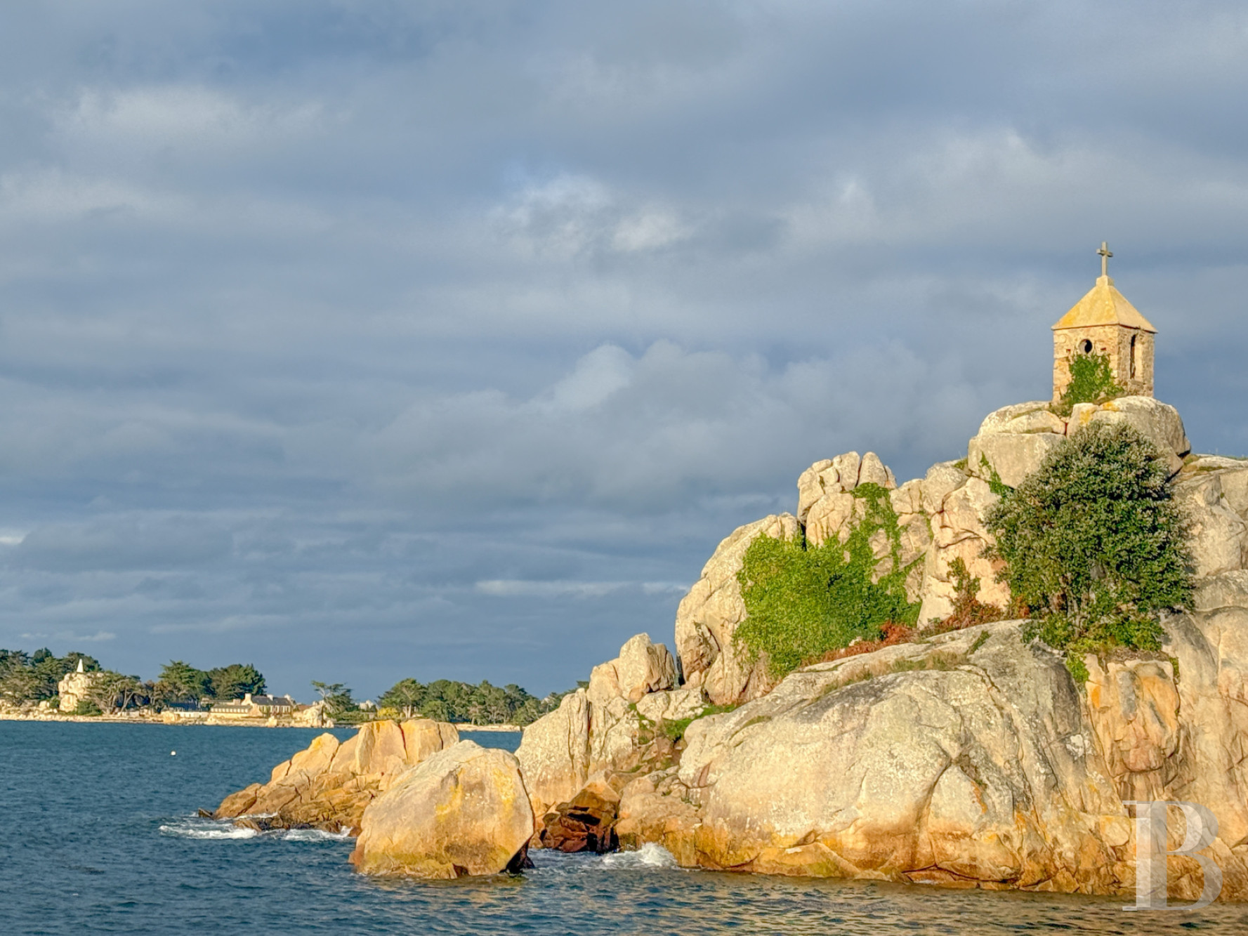 On a small rocky arrow-like promontory that juts out into the sea, the property is located in the traditional Breton town of Penvénan, with nearly 2,500 inhabitants, which combines a wild and untamed natural coastline with a rich historical heritage (islands, megaliths, chapels) as well as a dynamic community life. Lively and attractive, the town boasts many local shops, a weekly green market as well as a wide range of services, supplemented with tourism-based amenities and various recreational activities around Port-Blanc.