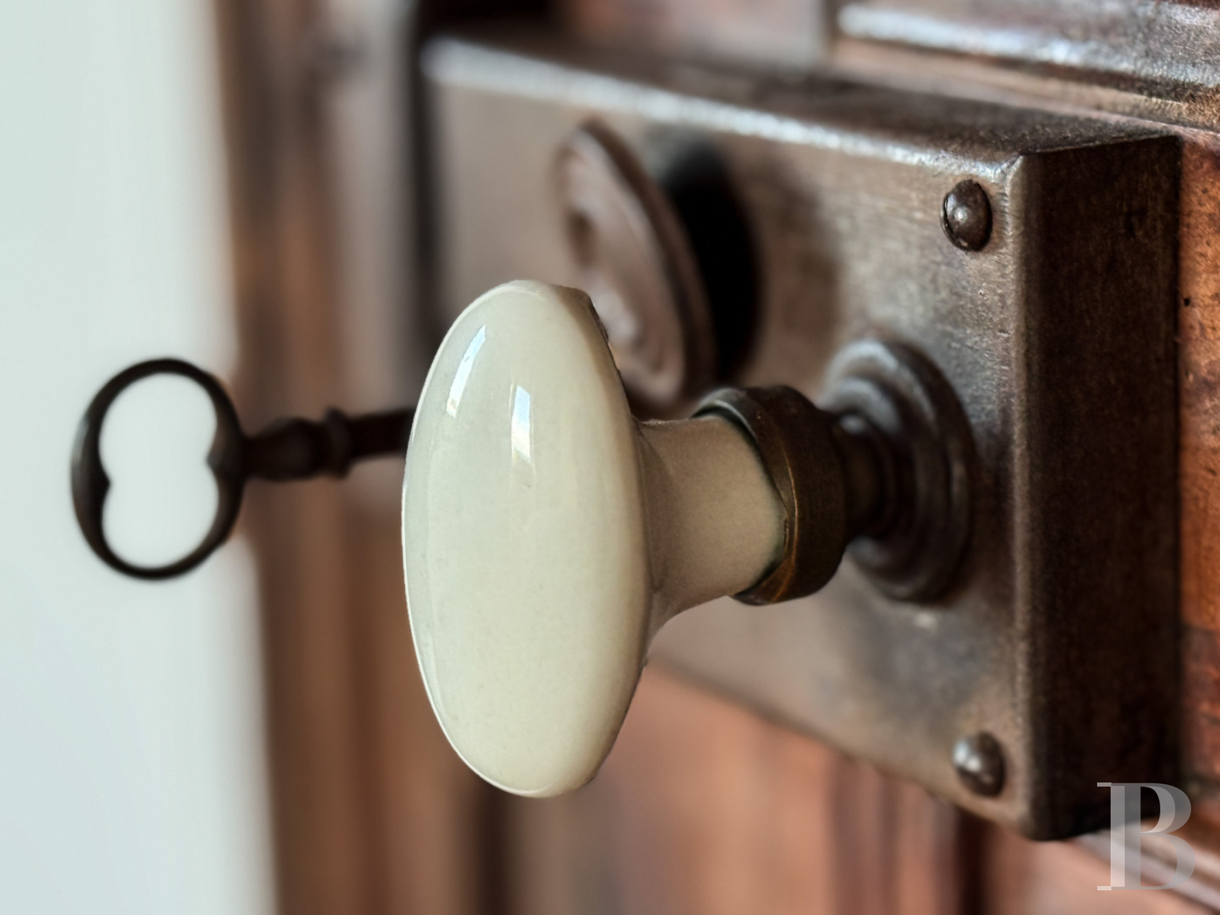 Nearby, a room, with numerous possibilities, features a working fireplace and could be turned into a study, a library or a bedroom, whereas the wooden doors that separate the dwelling’s different interior spaces are, for the most part, fitted with medium glass panes that allow the light to circulate freely.