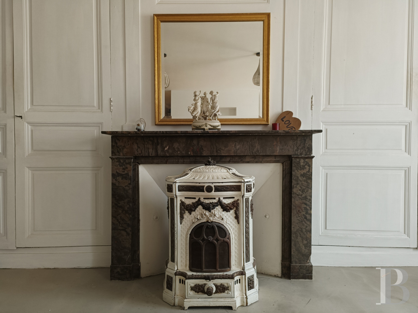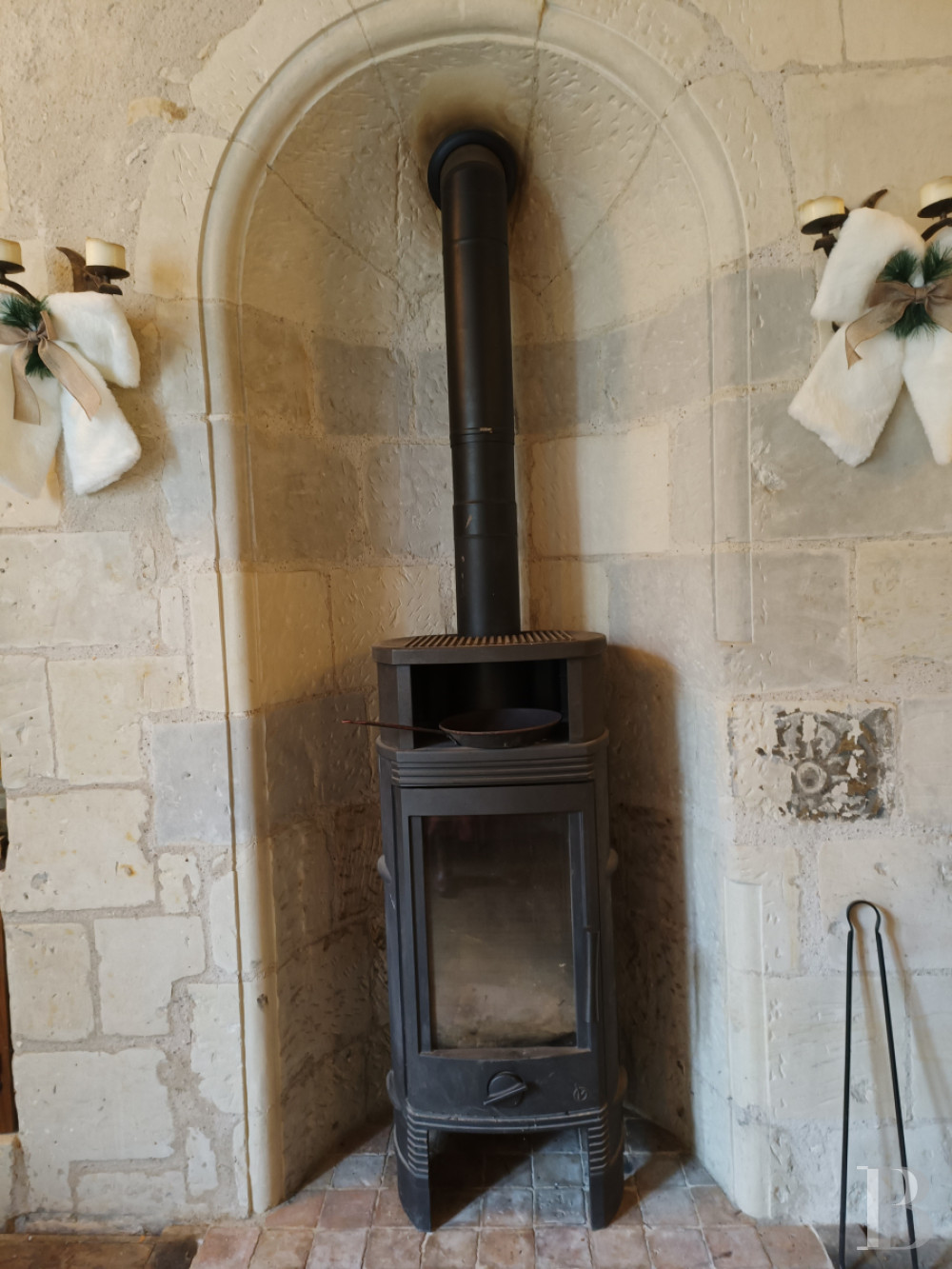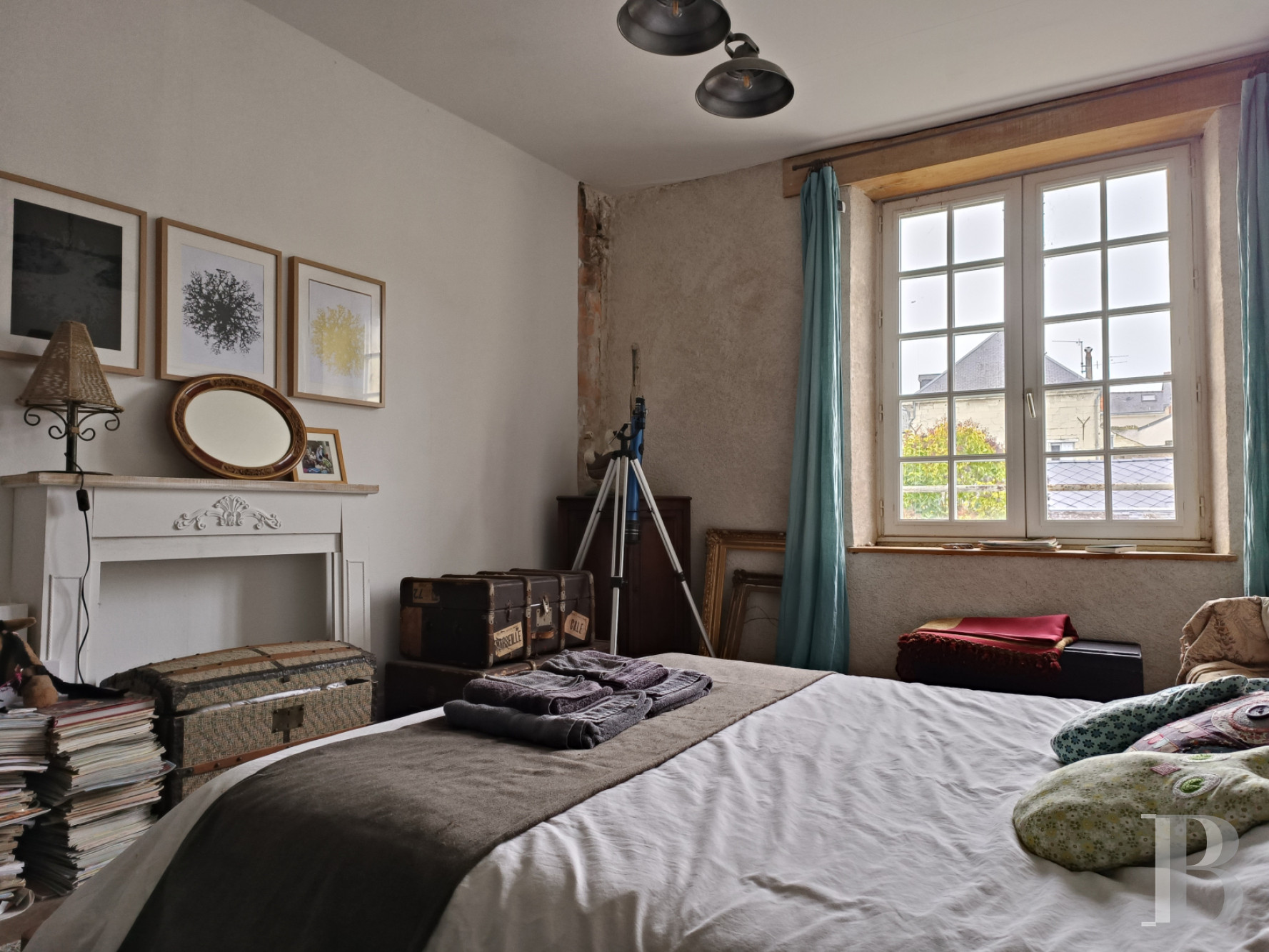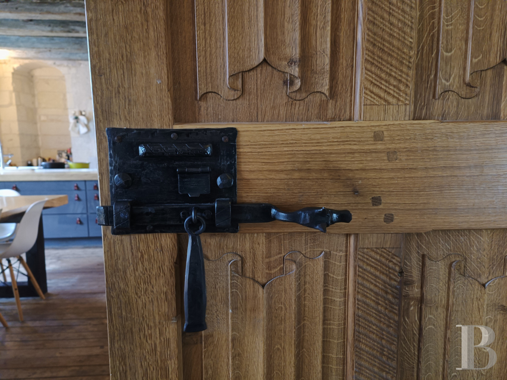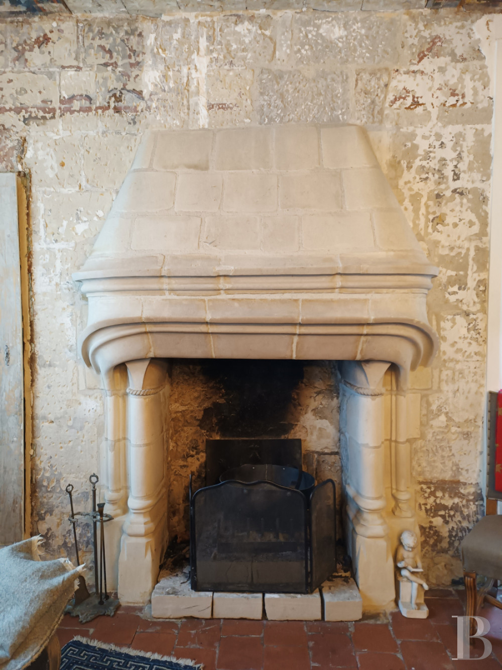 Il abrite des pièces à vivre, dont une vaste salle à manger avec cuisine, équipée d'un poêle à bois. Daté de 1890, le sol est parqueté à lames droites. Le plafond était autrefois peint en grisaille florentine, dont les vestiges sont encore visibles. Cette technique permet de créer un effet de profondeur. S'ensuit un salon, avec vue sur la rue. Une cheminée en tuffeau, aux bords arrondis, est adossée à l'un des murs. Le sol est carrelé en terre cuite. Remis au jour lors de la dernière restauration du bâtiment, en 2017, les plafonds sont remarquables, peints de motifs ocre, de rosaces et d'initiales sur fond bleu. Ils pourraient être classés, à la discrétion du futur occupant des lieux.