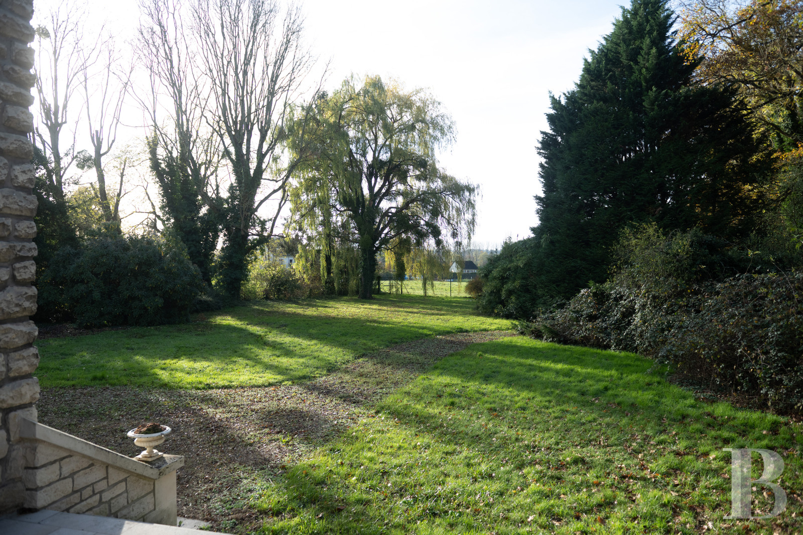 En contrebas du parc s’étend une vaste prairie, disponible en option dans la vente — avec un bâtiment divisé en boxes, qui ouvre une perspective sur la vallée. Les différents niveaux du terrain permettent d’admirer le village et les remparts de la forteresse de Coucy depuis de nombreux points du jardin, comme depuis les étages de la résidence.