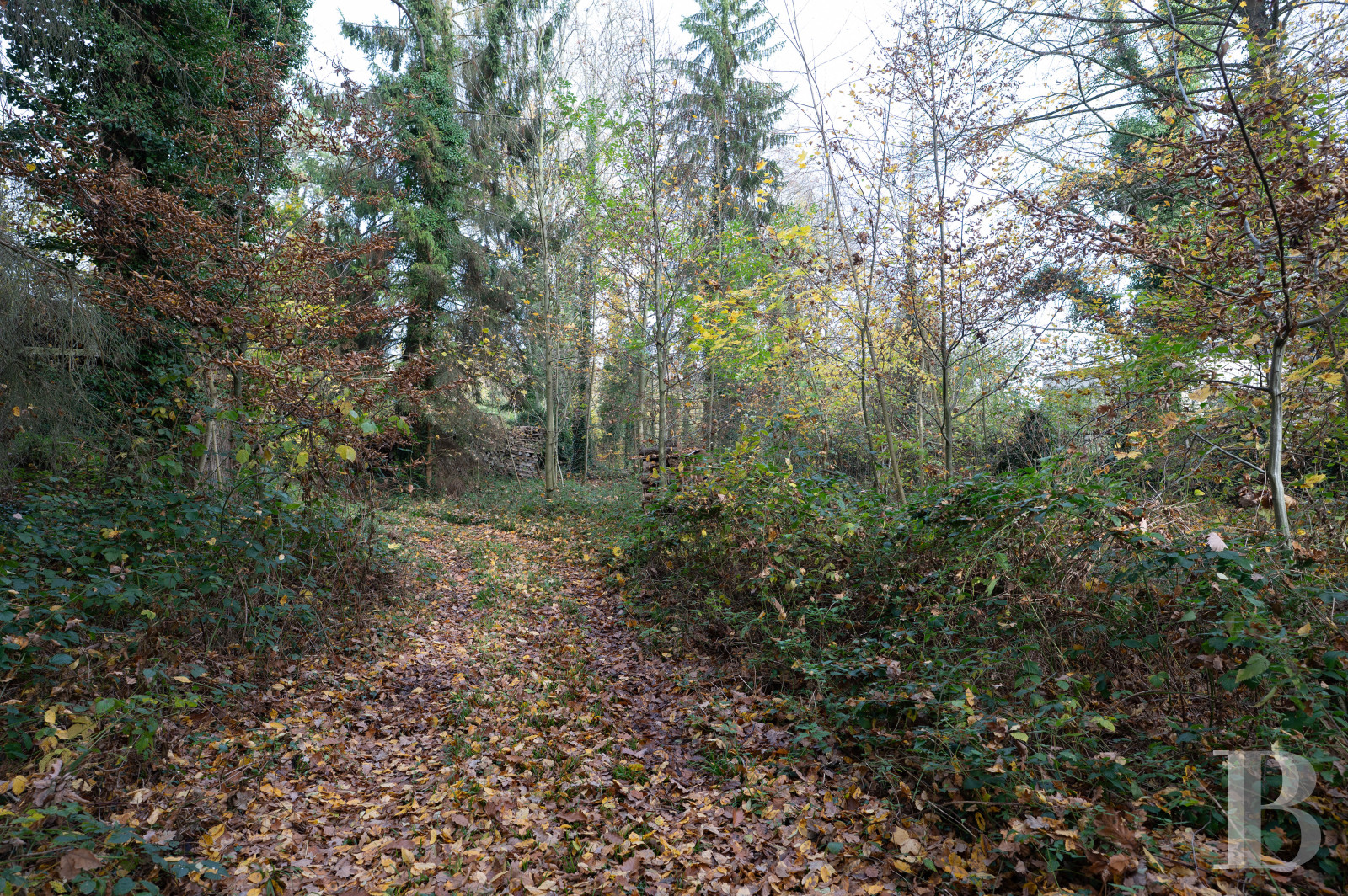 Un bois d’environ 1,6 ha approximatifs, entièrement clôturé, entoure la maison. Les grands arbres procurent une promenade ombragée. Un ancien hangar en lisière du couvert, qui sert d’abri pour le bois, pourrait trouver de nouveaux usages.