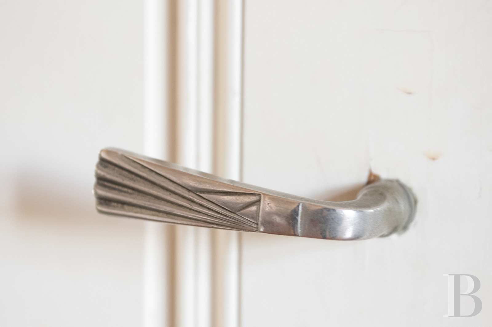 De l’autre côté du palier se trouve une troisième chambre éclairée par une porte-fenêtre orientée vers le petit bois et la terrasse en contrebas. Une salle de bains avec trois fenêtres est accessible depuis le palier et communique avec la chambre principale, la quatrième du niveau. Celle-ci est rendue très lumineuse par deux fenêtres de style Art déco. Des rangements intégrés s’ajoutent à l’étage, dont le sol est entièrement couvert de parquet.