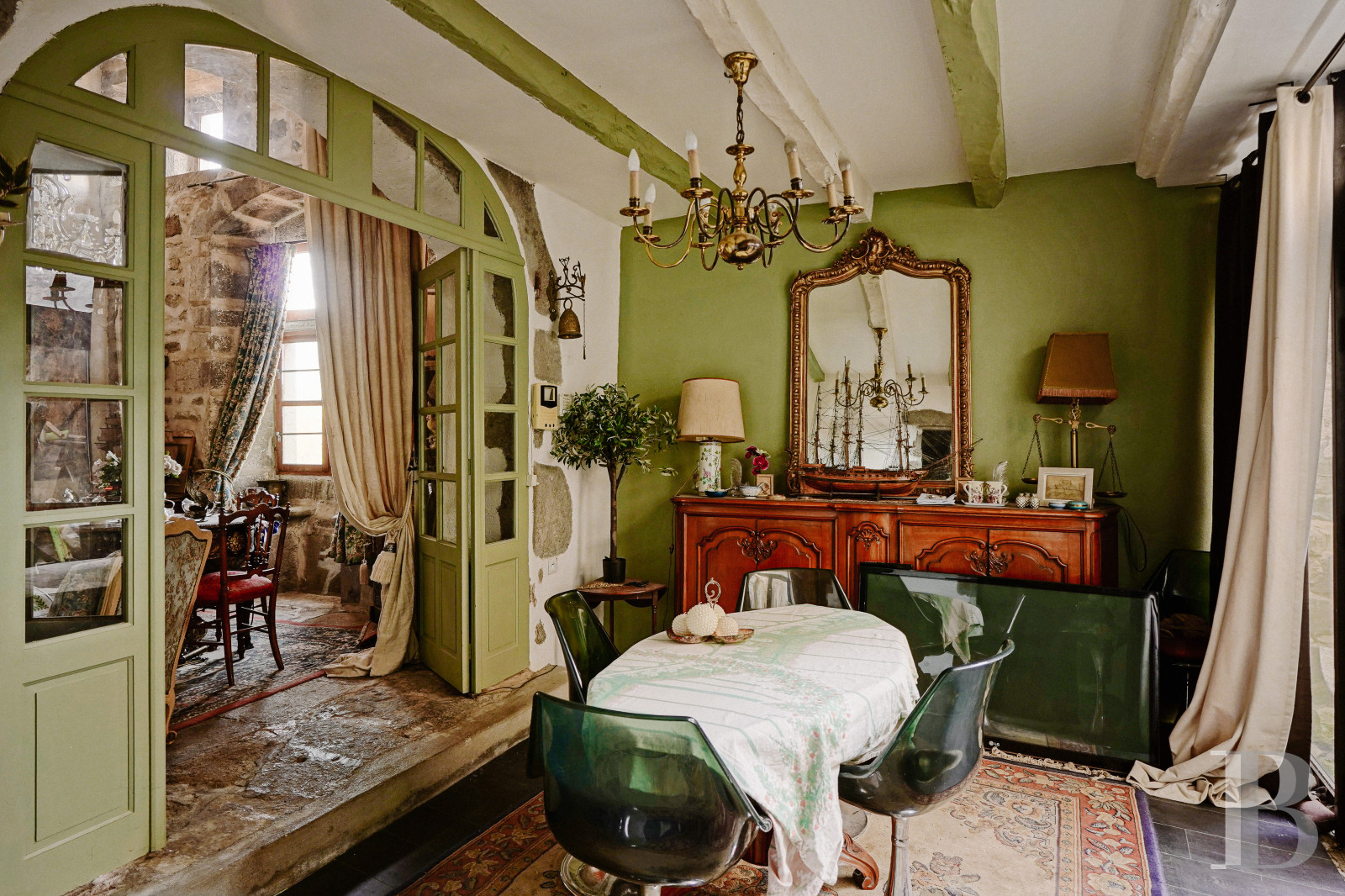 Établi au pied du château de Montaigut, l'hôtel particulier semble prolonger la mémoire du site à une échelle plus intime, celle d’un logis à taille humaine aménagé au fil des siècles, sans se dépareiller de son harmonie originelle. Les voûtes d’arêtes, les cheminées anciennes, les escaliers en bois ou en pierre, les sols en granit et les plafonds à la française, composent un ensemble harmonieux et authentique.