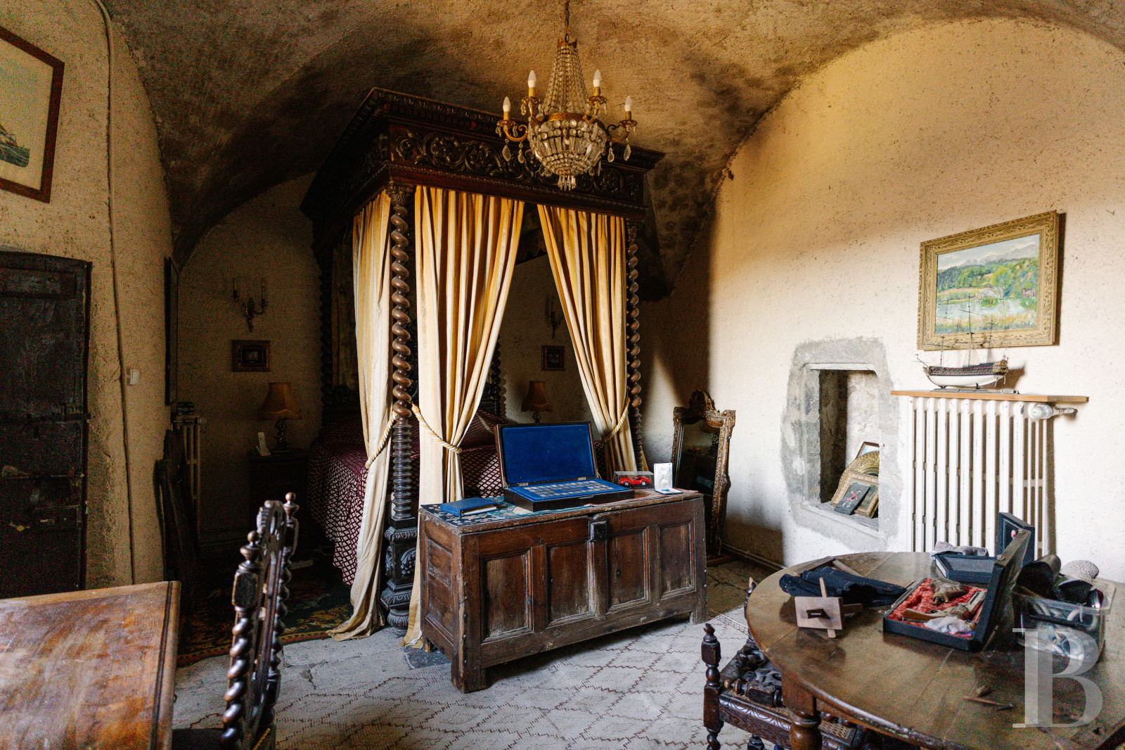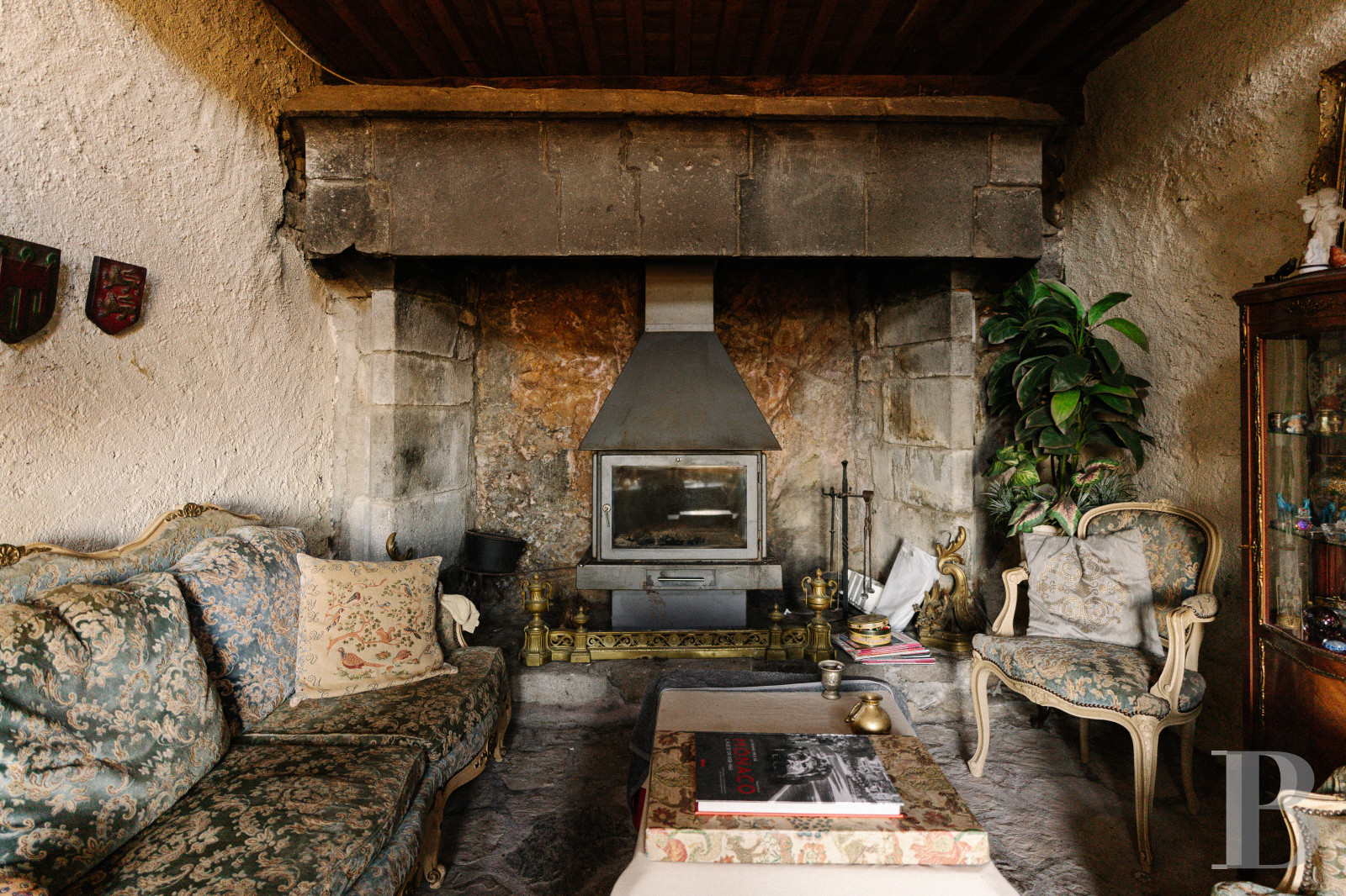 Une cuisine voûtée d’arêtes, dont une cheminée de pierre marque le centre, communique avec l’un des jardins en terrasse. Le salon attenant, gratifié d’un plafond à la française et d’une cheminée en pierre du 18e s., conserve la trace d’une ancienne porte, aujourd’hui murée, identifiable à son arc brisé. Un escalier en bois prend naissance dans ce salon et mène à une chambre à coucher.