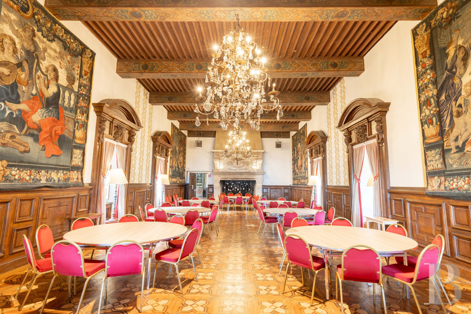 Un appartement de 215 m² établi au sein du château, est à vendre EN SUS au prix de 2.060.000,00 €. Il comprend un salon, une salle à manger et une cuisine indépendante, six chambres à coucher, deux salles d'eau, des toilettes et une buanderie. DPE réalisé en avril 2024 : "G" & "C".Le parc