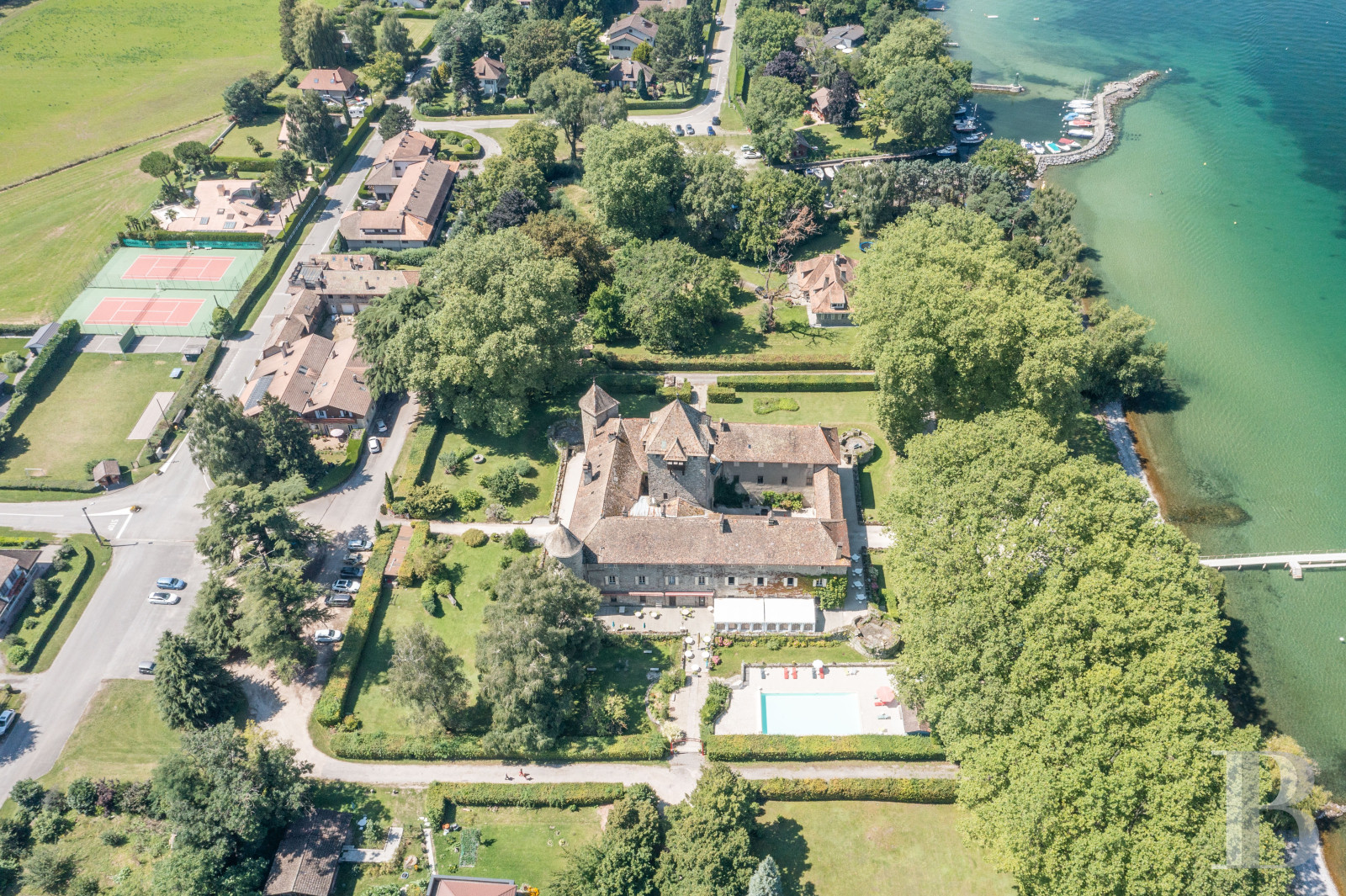 Il est des domaines privés qui marquent le temps et les esprits par leur situation unique et leur architecture puissante, à caractère patrimonial. Ce château, propriété familiale depuis plusieurs décennies, est de ceux-là. Il a connu une activité hôtelière florissante qui ne demande qu'à être exploitée à nouveau. Les majestueuses pièces de réception qui font face aux côtes suisses, et le caractère intimiste et privé des bâtiments, répartis autour d'une cour carrée close, peuvent tout aussi bien convenir à d'autres activités, voire à une occupation familiale ou un à ré-aménagement en appartements indépendants. La proximité de Genève, Lausanne, Évian et Annecy, constitue un atout supplémentaire.
