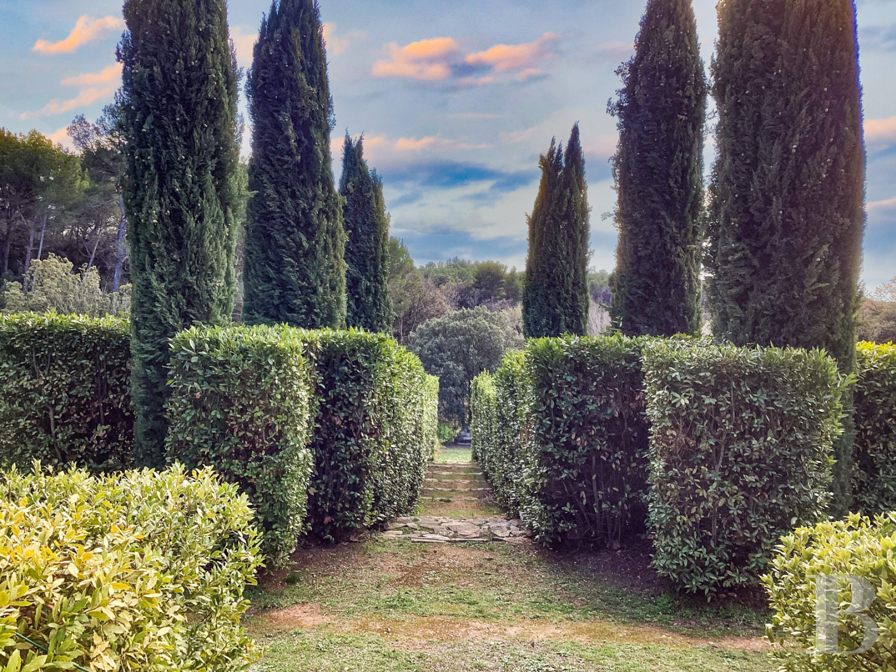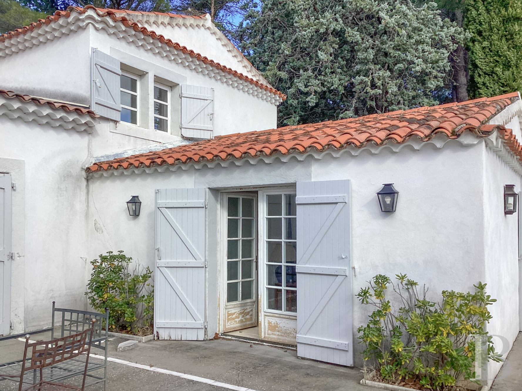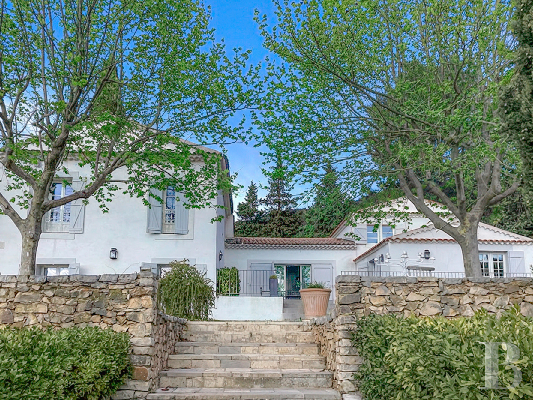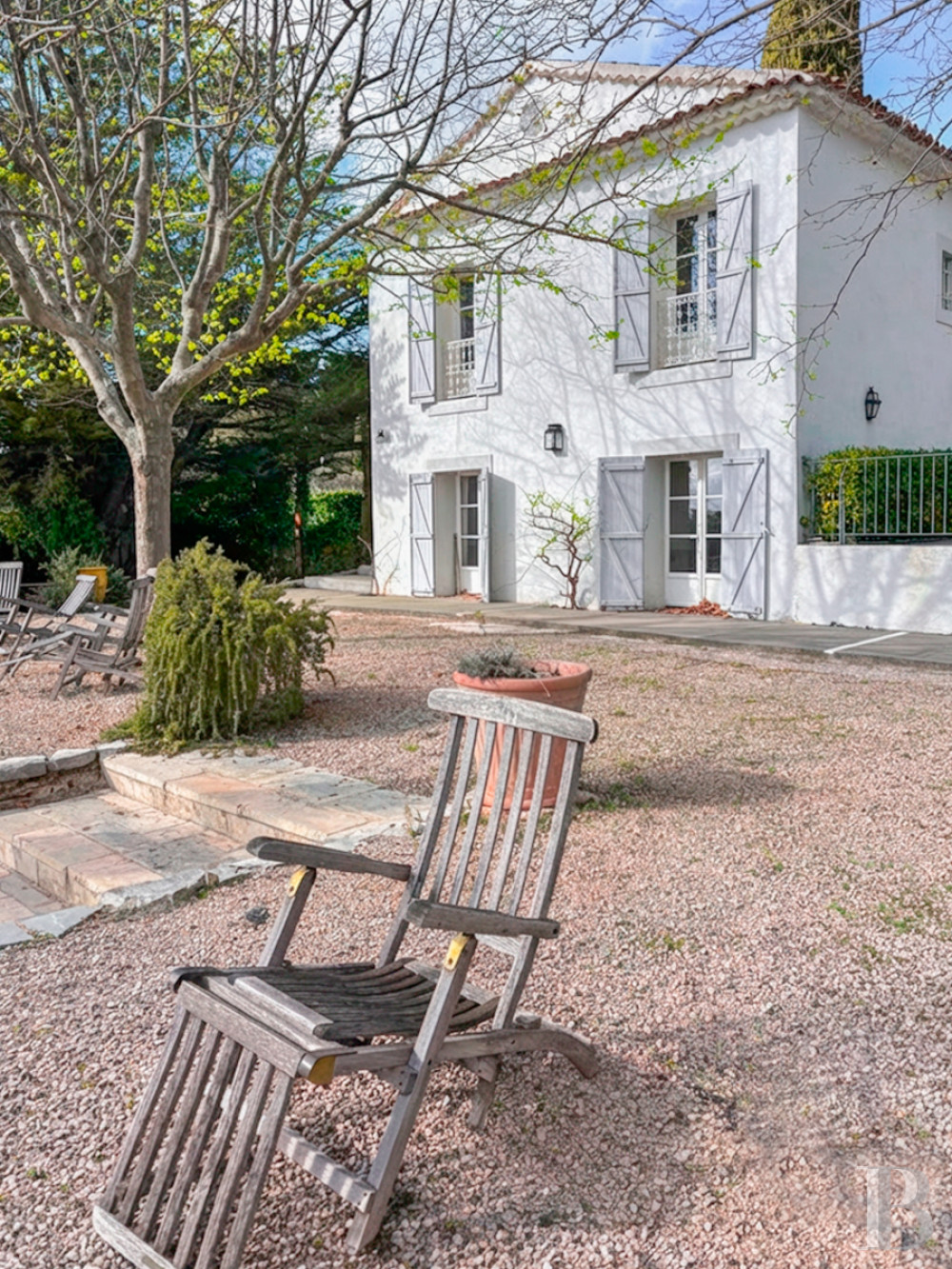 Le terrain est tourné largement vers le sud, puis vers l’ouest et à l’est du bâti. Les terrasses successives, bordées de murets, descendent en pente douce vers les champs d’oliviers. Deux platanes centenaires ombragent la terrasse principale, où un espace repas est logé sous la ramure d’un cyprès de Lambert bicentenaire. Plus à l’ouest et au sud, les oliveraies s’étendent en contrebas, tandis qu’à l’est, une pinède protège la propriété des vents. En limite sud-ouest, discrète et à l’abri des regards, s'étend une piscine maçonnée de 14 x 6m traitée au chlore, entourée de haies et de murets de pierre. L’ensemble forme un parc typiquement méditerranéen, au rythme du soleil et du parfum des essences provençales. Trois petites parcelles plantées d'oliviers s’étendent de l’autre côté de la route.Our opinion
