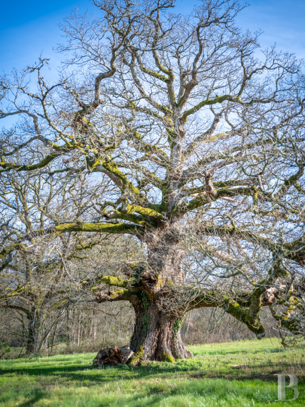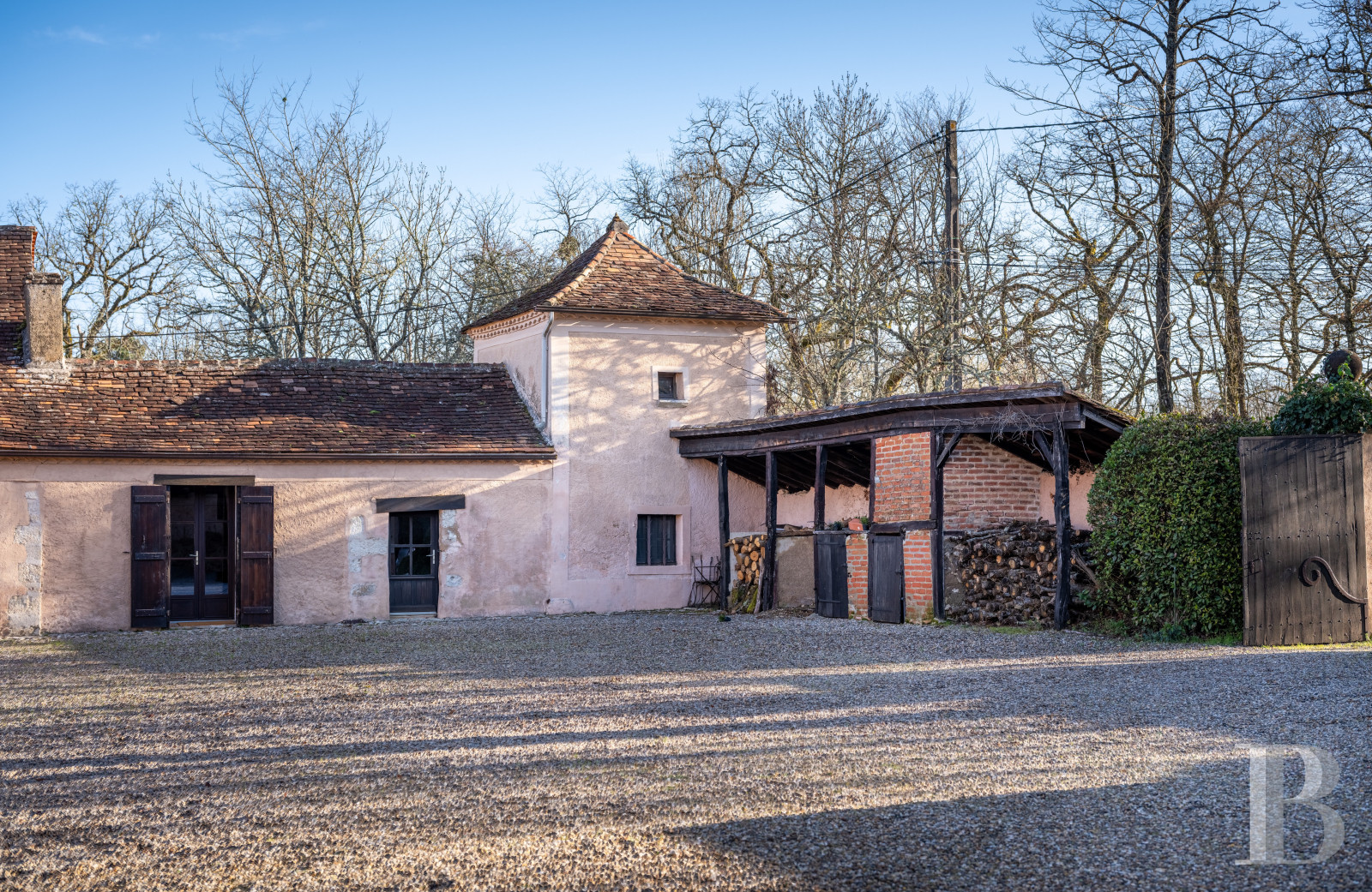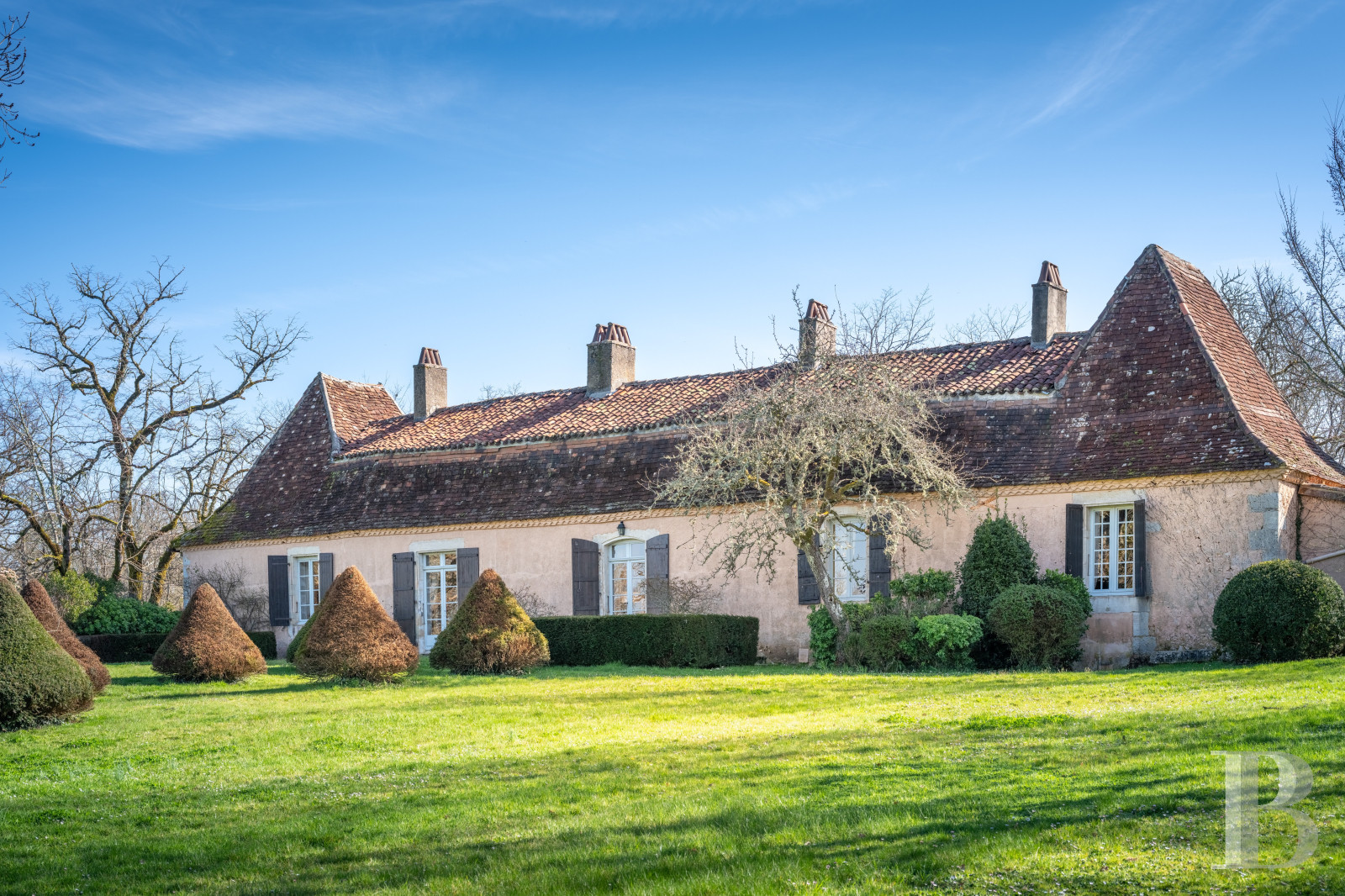 Une frugale chartreuse du 17e s., représentative de l’architecture périgourdine traditionnelle. Construite de plain-pied et traversée par la lumière, de la cour au terrain, l'intérieur et l'extérieur s'entremêlent pour ne faire plus qu'un aux beaux jours. L’aménagement des anciennes dépendances de l’aile nord a permis d’augmenter la capacité d’accueil, mais aussi de conserver l’identité du domaine. Quelques travaux permettront d’en révéler pleinement le potentiel et d'en accompagner la prochaine évolution. Dans le prolongement de son organisation originelle, la propriété est sise au surplomb de la vallée, orientée vers l’ouest. Le parc s’ouvre largement sur le paysage vallonné, à l’ombre d’un chêne trois fois centenaire qui structure les perspectives depuis la maison.