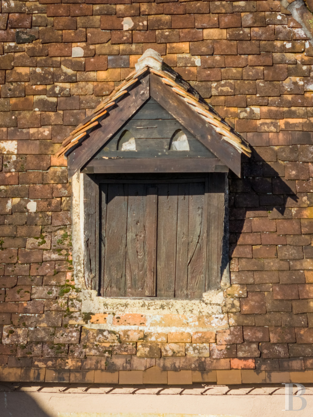 Sous les rampants de la toiture, un palier dessert deux chambres, chacune associée à une salle de bains privative avec toilettes. Des volets intérieurs protègent les baies, tandis que le sol est dallé de terre cuite.