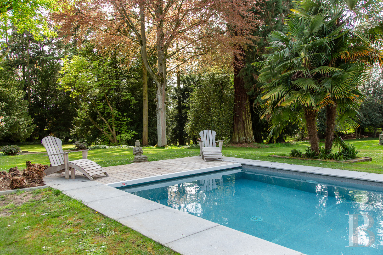 Il s’étend sur environ 1,5 ha et dégage une majesté saisissante. Planté d’essences originales, dont six séquoias impériaux, il constitue un espace naturel d’une grande singularité. Il constitue un refuge à l’abri des regards où le temps semble suspendu, au sein d’une végétation choisie avec soin.Dans l’axe parfait de la maison, une piscine rectangulaire s’inscrit dans la perspective. Une rotonde en pierre, équipée d’un four, invite à savourer les repas d’été dans une atmosphère conviviale et intemporelle.Au fond du parc, un atelier dédié au bricolage côtoie une serre ainsi qu’un abri pour un équidé. Deux petits bassins viennent parfaire l’ensemble, ajoutant une touche supplémentaire d’harmonie à l’ensemble paysager.Our opinion