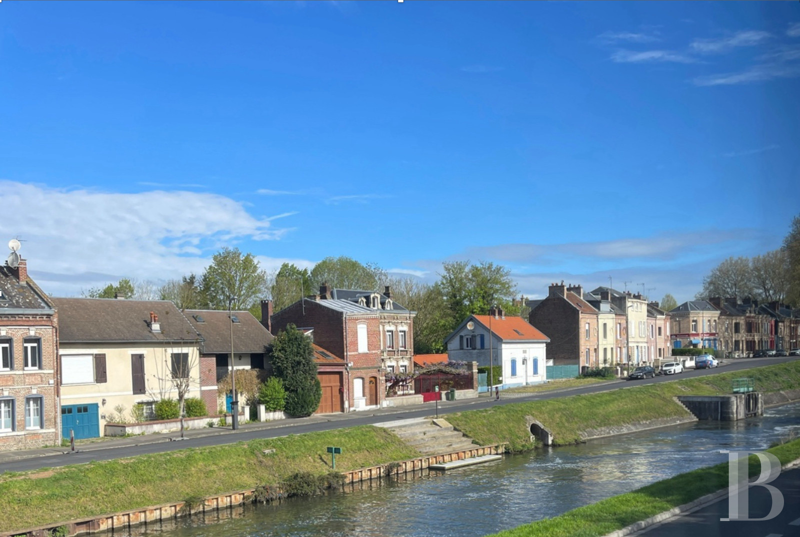 La maison se trouve sur les quais de la Somme, en centre-ville. Elle jouit d’un cadre bucolique en bord d’eau, mais les commerces, les écoles et les services sont tout de même accessibles à pied. Amiens occupe une position stratégique qui permet de se rendre facilement à Paris et dans le nord de l’Europe en utilisant le réseau ferroviaire ou autoroutier, via l’A16. En train, la capitale est à un peu plus d'une heure, et la future ligne de TGV reliera l’aéroport Paris–Charles-de-Gaulle à Amiens d’ici 2028.