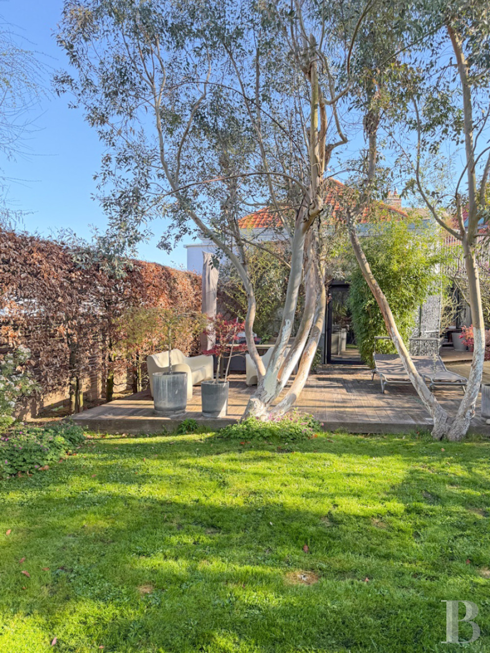 Il est composé d’une pelouse agrémentée par de nombreux arbustes et dominée par de grands arbres. Deux terrasses en teck pour se détendre sur des transats ou pour un dîner sous les étoiles constituent un cadre idyllique pour se ressourcer.Our opinion