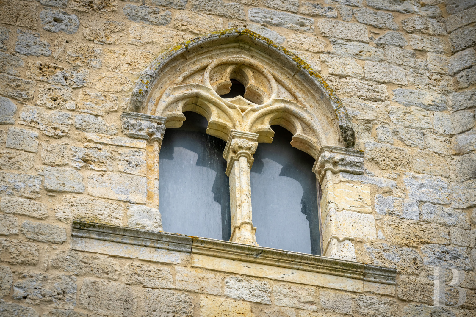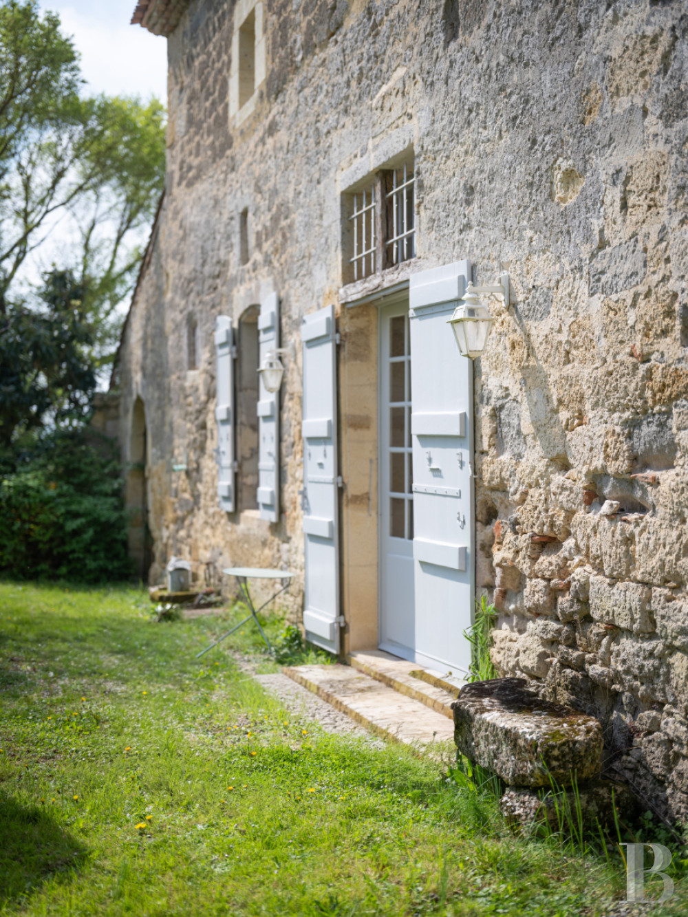 De forme oblongue, la façade, dont l'appareil se distingue par des alternances de blocs réguliers et de moellons, témoins d'époques successives de rénovation, affiche un caractère authentique certain, renforcé par un jointoiement à la chaux, clairsemé et patiné. Une double porte surmontée d'un imposte vitré se tient entre de hautes baies munies de menuiseries en simple vitrage à petits bois, qui rythment le logis. Les encadrements sont en pierre de taille, chacun est surmonté de lucarnes percées récemment afin de faire entrer à l'étage la lumière du Levant. Quelques baies plus modestes ponctuent la façade ouest, quand une porte fenêtre s'ouvre au nord sur une terrasse intime, ombragée par une tonnelle, qui prend place entre la demeure et le mur côté ruelle. D'une surface de quelque 370 m², le logis, rénové, est entretenu.Le rez-de-jardin