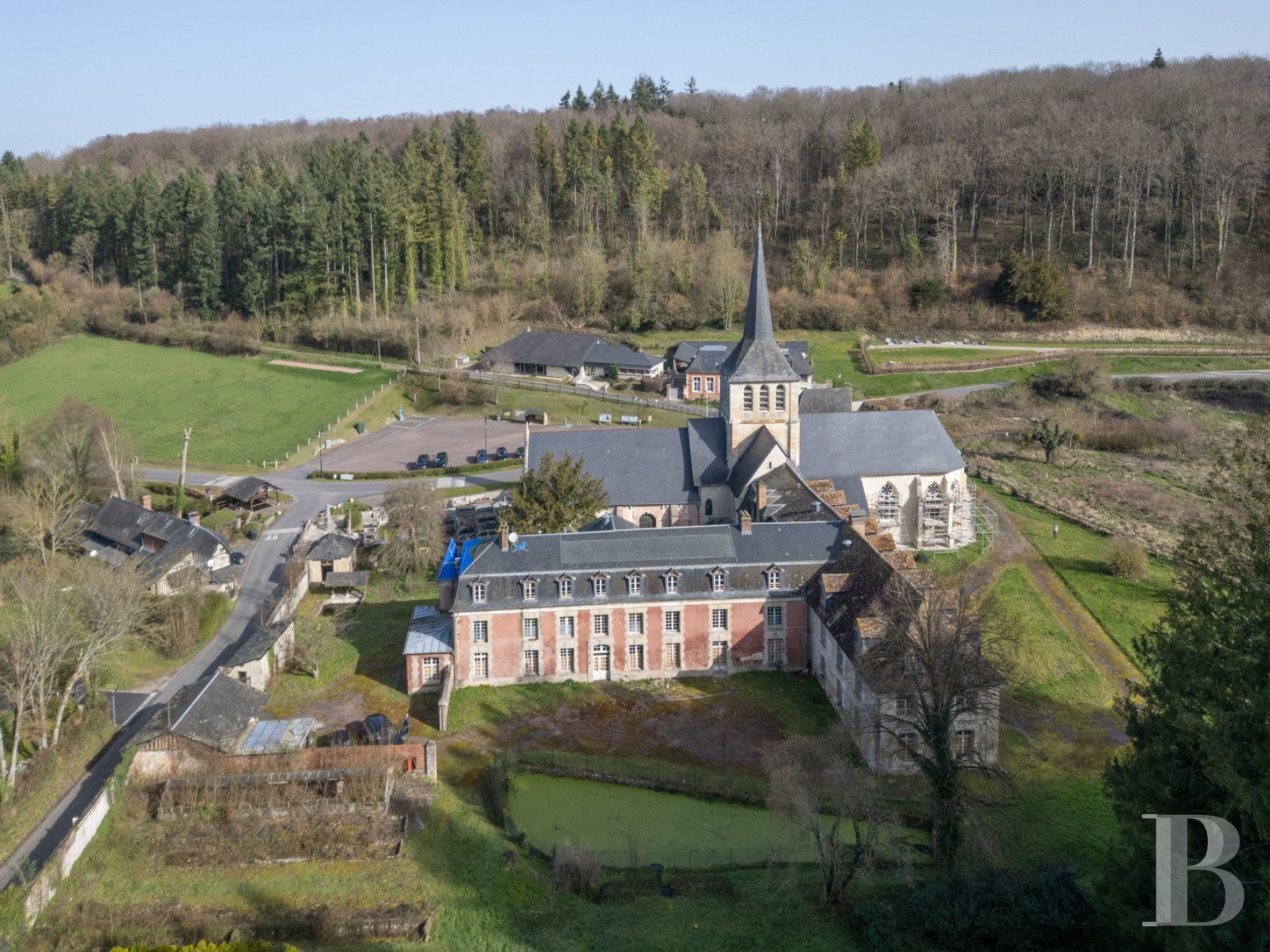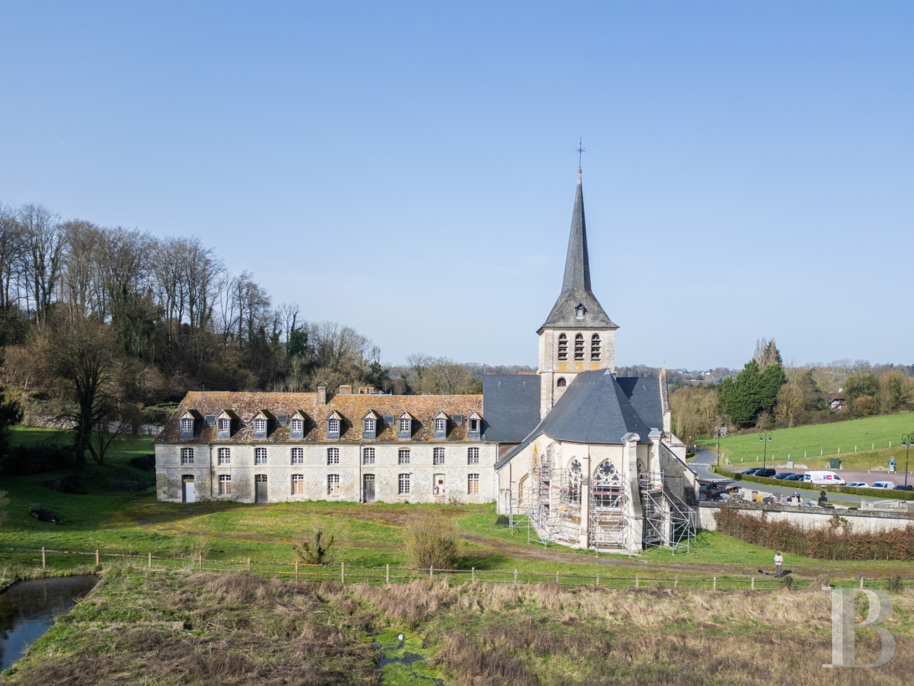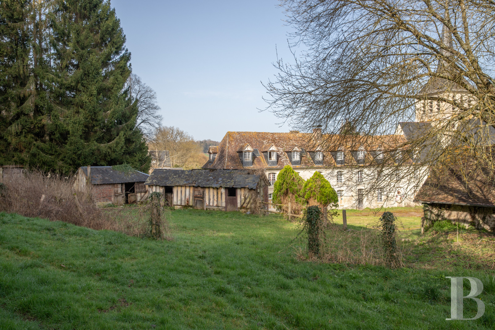 En pays d'Auge, un ancien domaine religieux remarquable, à l'histoire presque millénaire. Le prieuré de Saint-Hymer forme aujourd'hui encore un ensemble cohérent sur le plan architectural, idéal pour un projet ambitieux, comme un hôtel ou un siège d'entreprise. L’église parfaitement conservée donne au site une identité forte, tandis que les vastes bâtiments et les dépendances ménagent des volumes amples et modulables. À rénover entièrement, les espaces intérieurs conservent des matériaux et éléments valorisables : cheminées, escaliers et murs à pans de bois. Les jardins clos à repenser et la tranquillité du site contribuent à l'attractivité à ce bien authentique et singulier, à quelque 2 h de Paris.