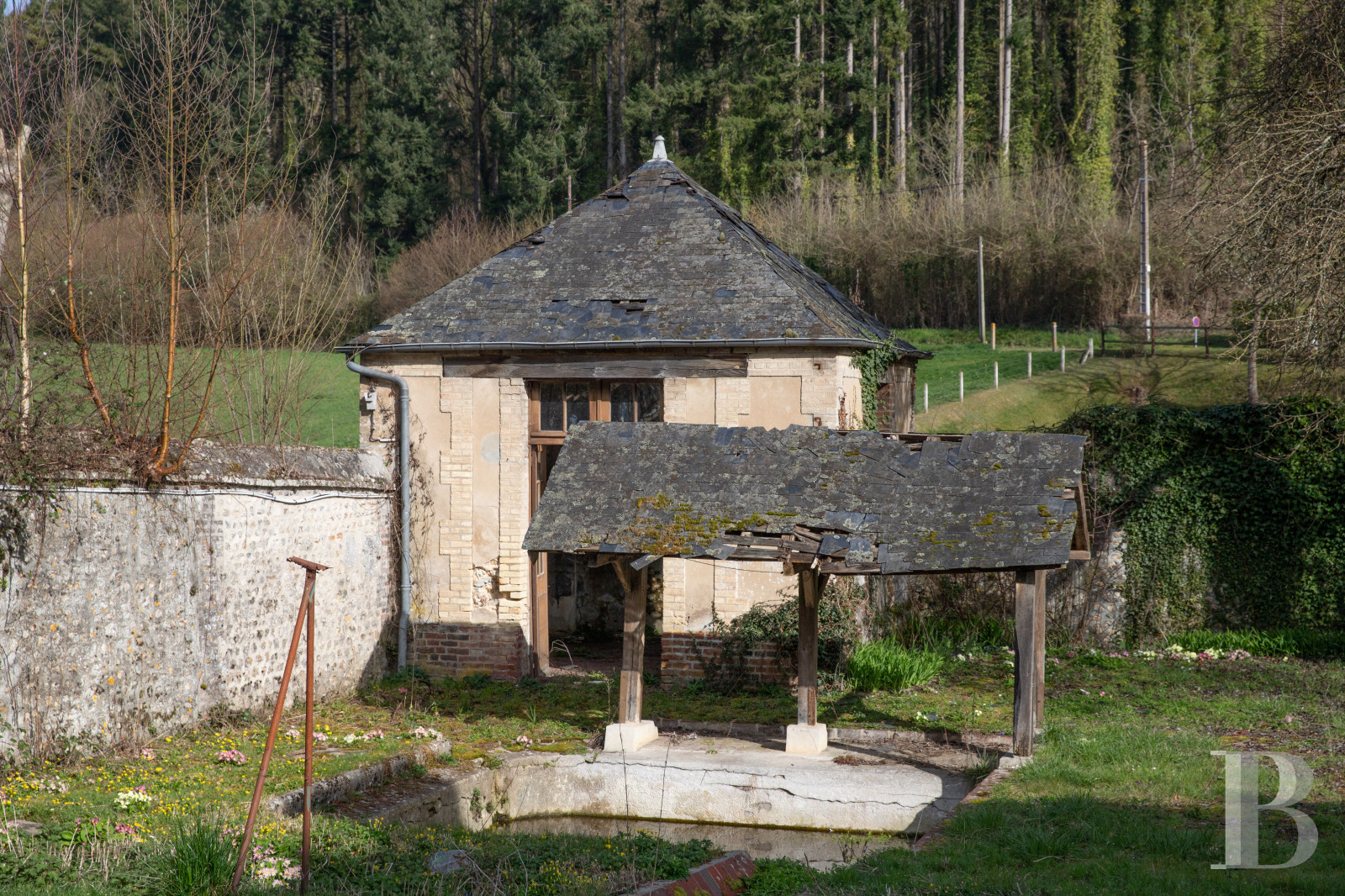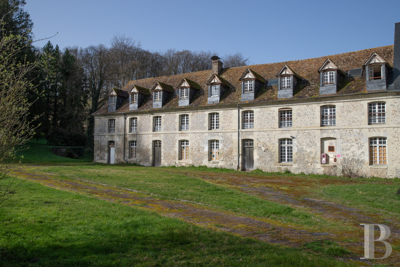 Les extérieurs composent un vaste enclos aux ambiances variées. Le mur d’enceinte est percé de deux portes, le porche principal, flanqué de la maison de gardien et une porte secondaire à l’ouest. Des allées sableuses tracent des circulations entre des pelouses, des prairies ouvertes et des zones en friche qui attendent d’être réinvesties. De nombreux arbres anciens, chênes, hêtres et charmes, ponctuent les espaces.Our opinion