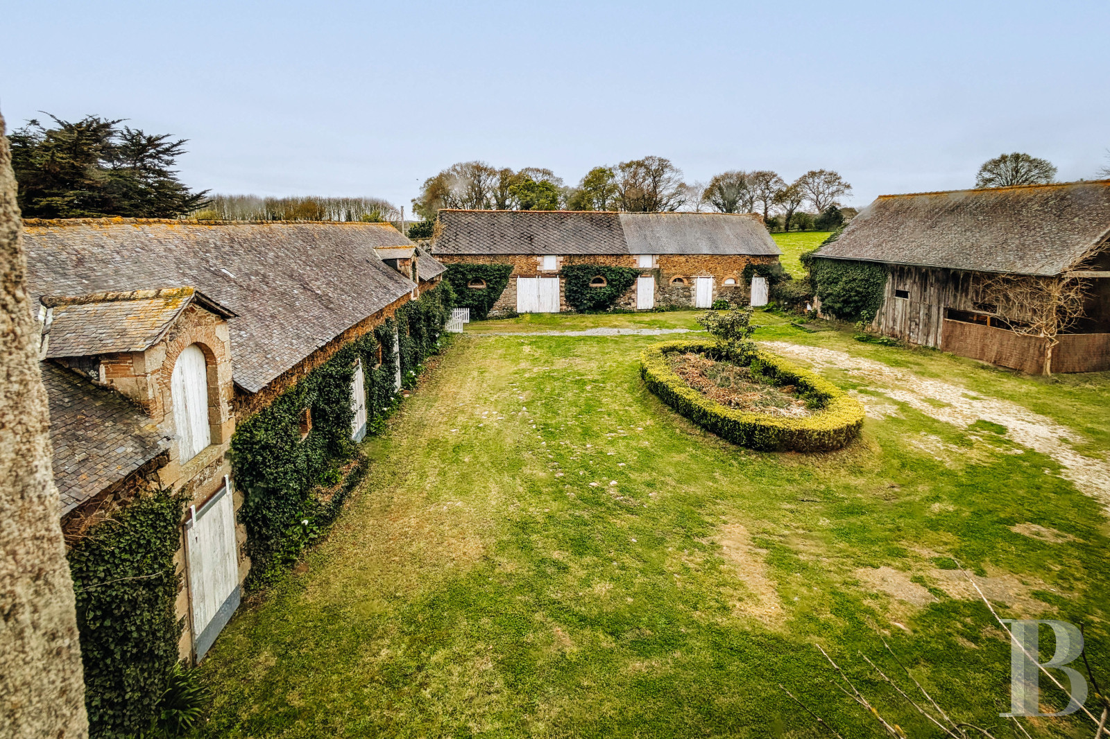Organisée autour d'un rond de jardin délimité par une haie de buis et ombragé par un magnolia, la cour intérieure révèle par endroits les pavés d'origine. À l'ouest du hangar et à l'abri des regards, se trouve une piscine chauffée de 10 x 4 m environ, associée à une grande terrasse en bois. Autour du manoir, de vastes pelouses sont parsemées de bosquets d'arbres. À l'arrière, sur le versant ouest, une vaste pâture d'un seul tenant de plus de 2 ha assure la tranquillité du manoir et peut recevoir des chevaux.Our opinion