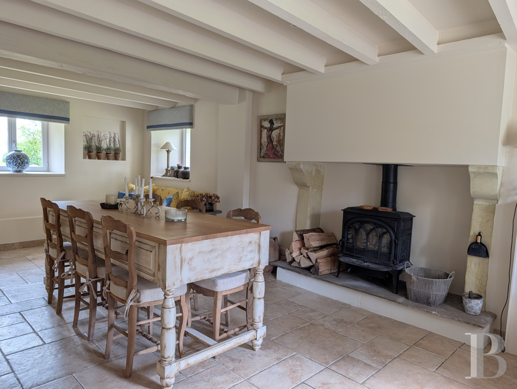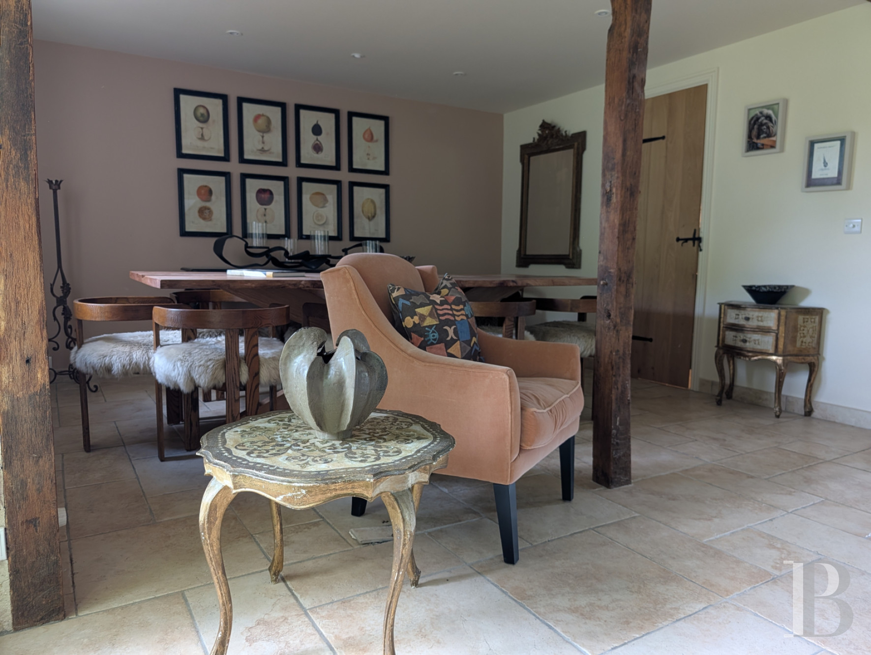 L'arrivée dans le village, pittoresque et soigné, donne le ton ainsi qu'une sensation de calme et d'équilibre, confirmée dès l'entrée dans la propriété. Le jardin, parfaitement entretenu, combine liberté champêtre et élégance paysagère. Les travaux effectués dans le logis, qui ont fait usage de matériaux nobles, de lignes nettes et de tons clairs, dans la continuité de l'architecture originelle, sont de grande qualité et font montre d'une belle cohérence. Pris entre tradition rurale et sobre modernité, l'ensemble donne l'envie simple d'y poser ses valises, ses tableaux et son regard pour s'y ressourcer, comme dans une clairière habitée face à l'enveloppant paysage champenois.