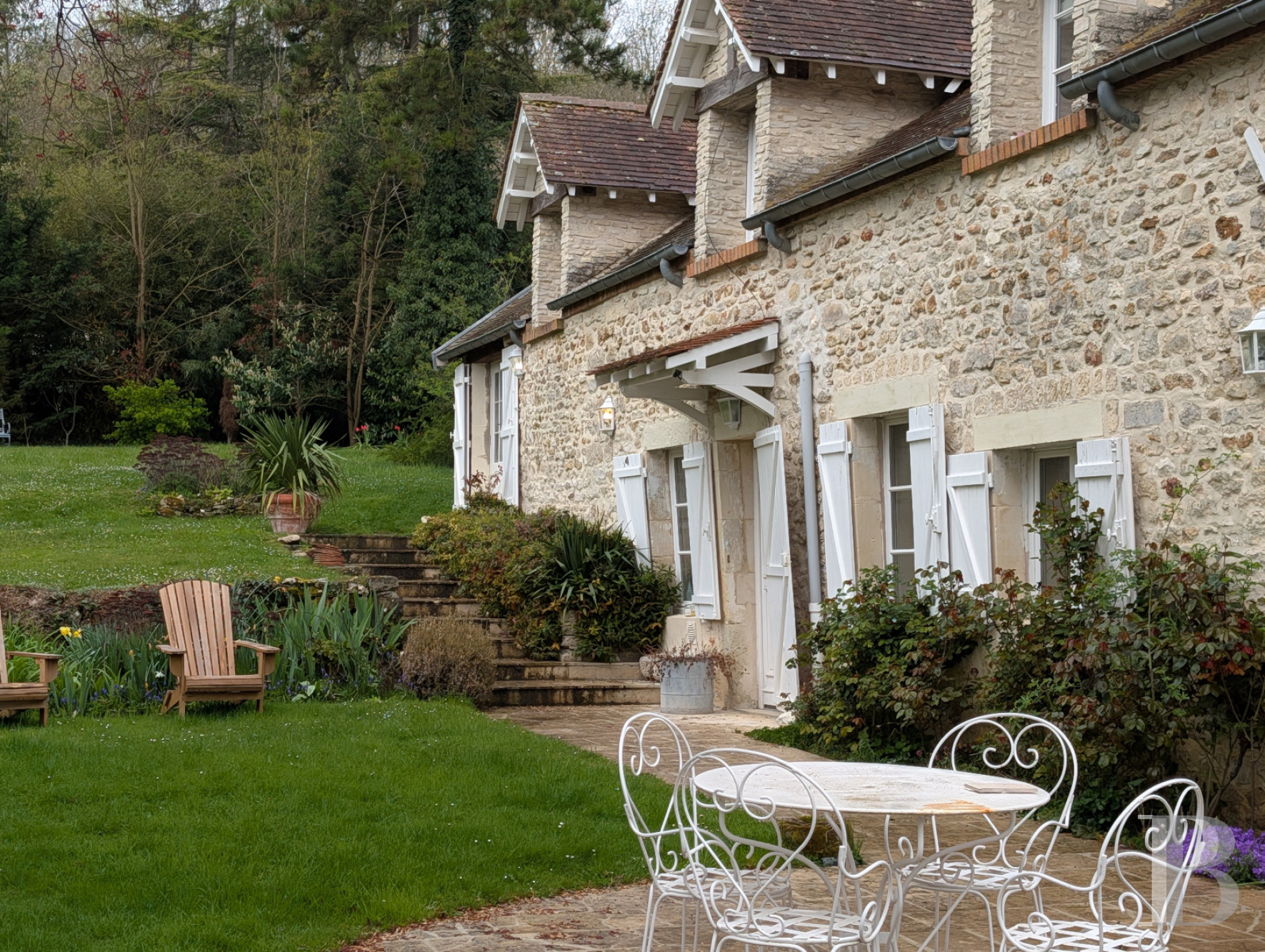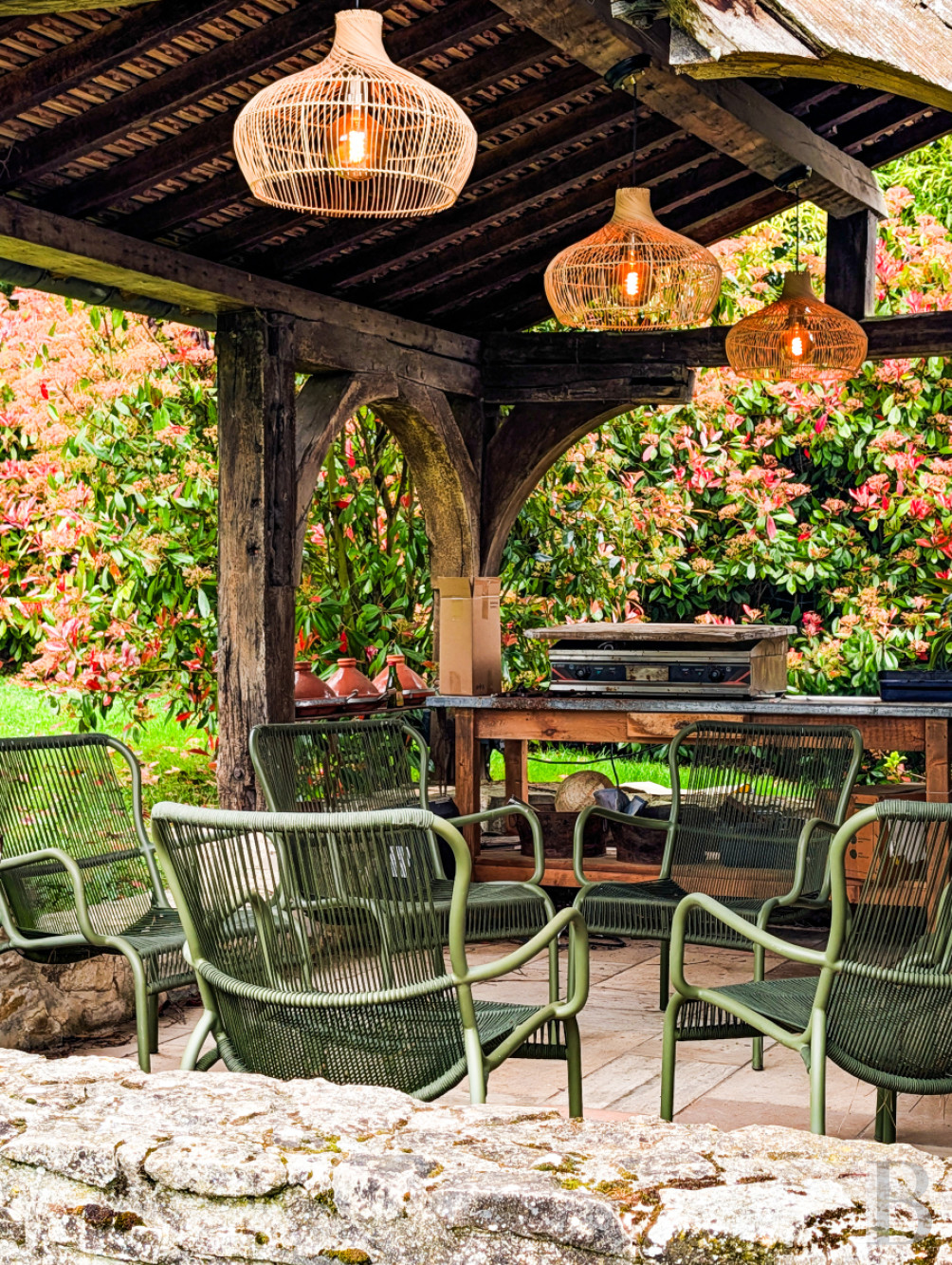 Les ourlets luxuriants de grands arbres et buissons florifères donnent un écrin à la fois dense et changeant à la bâtisse. Les vastes espaces enherbés, en pente douce, rythmés par des murets de pierre, composent différentes terrasses où s'installer à l'abri des regards. L'arrière du jardin, plus champêtre, regroupe différents arbres fruitiers dont un majestueux noyer. L'ensemble occupe une surface d'environ 4 000 m².Our opinion