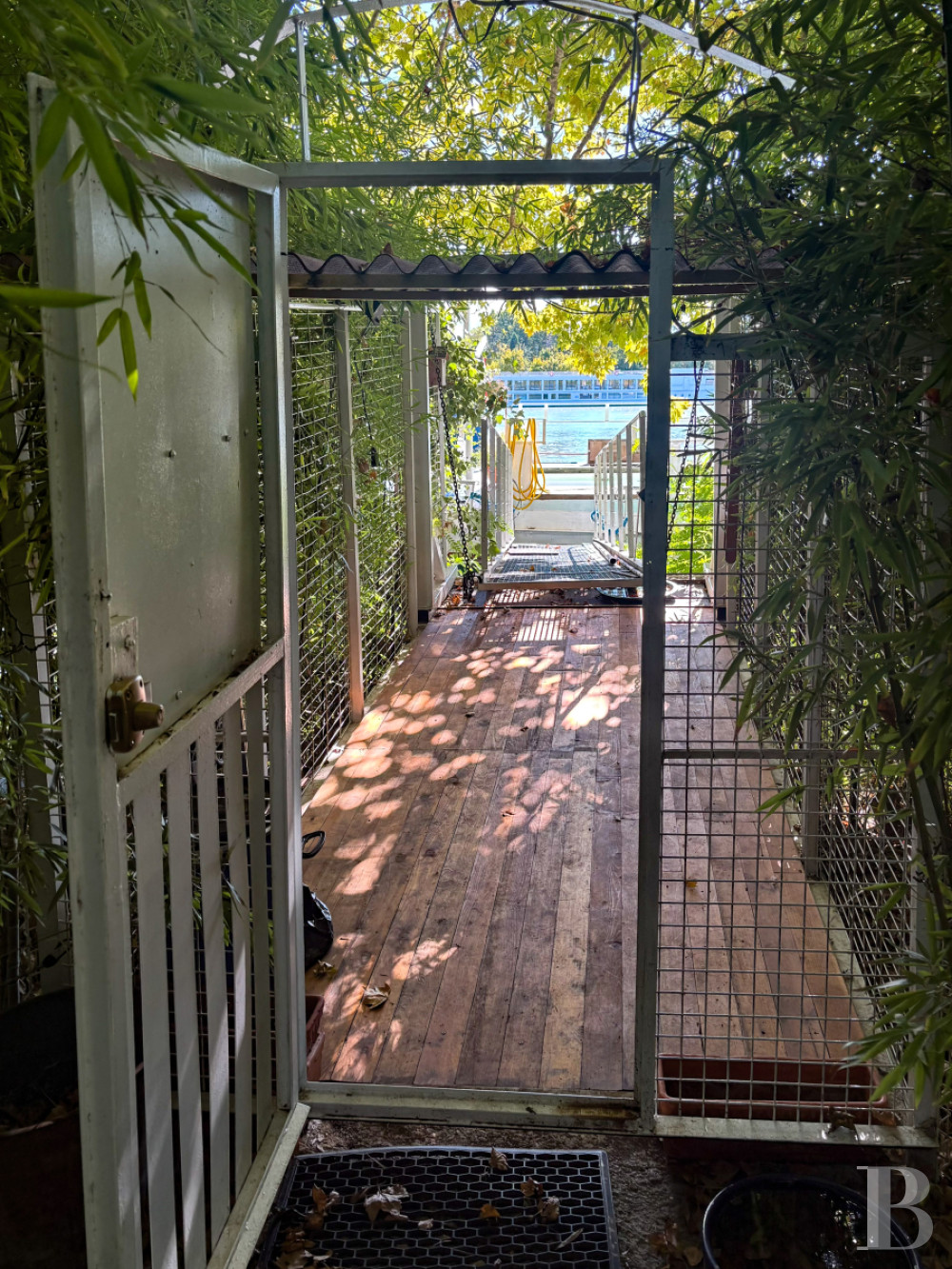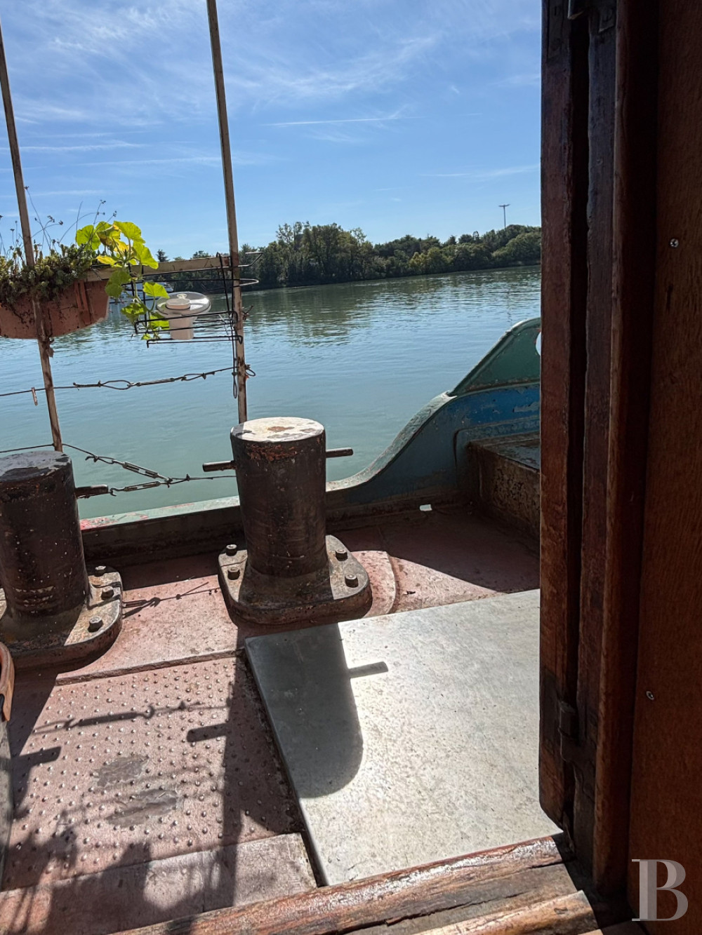 The annual lease for this barge’s mooring ring is situated on the quays of Île Piot, one of two islands located between the two branches of the River Rhône as well as the Vaucluse and Gard areas, opposite Avignon’s historic centre. The uninterrupted view takes in the river and boats flowing past, the city and its far-off hustle and bustle, as well as the Papacy, which is a major historical monument listed as UNESCO world heritage. Île Piot still has a wild side to it that is jealously maintained by its residents and inhabitants, whether bargees or landlubbers. It is directly linked to the city-centre by two bridges. One of them leads to the historical centre, which can be reached in 10 minutes on foot or by bike, or in 5 minutes by car or bus. Lastly, Avignon’s high-speed TGV railway station is only 15 minutes away by car, while the central station is 10 minutes away.