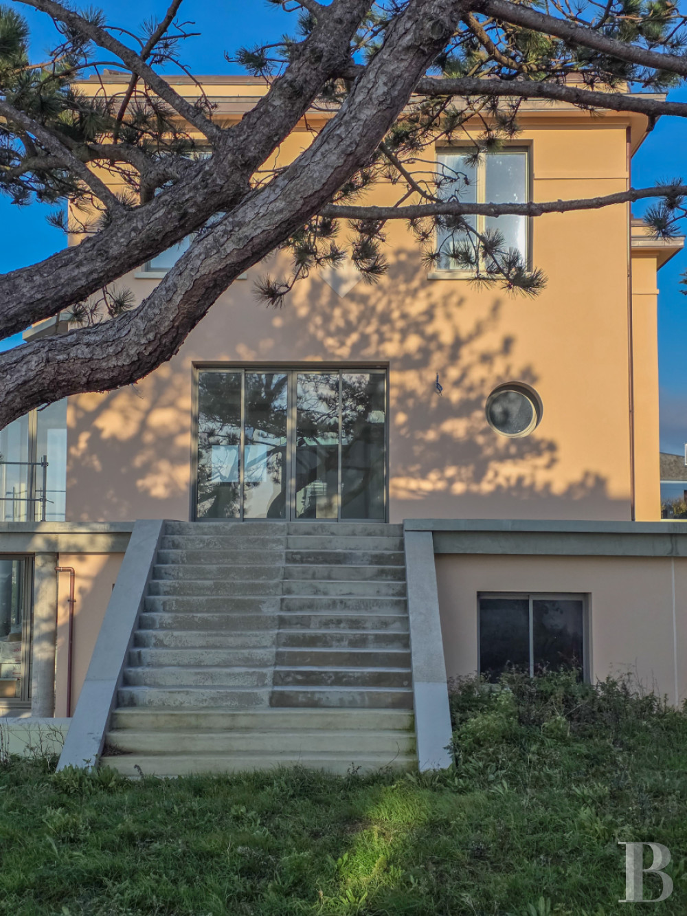 The renovation was carried out in keeping with the original style of the building: volumes, ochre-coloured facades, semi-circular arch of the entrance door, characteristic elongated shape of the picture windows.