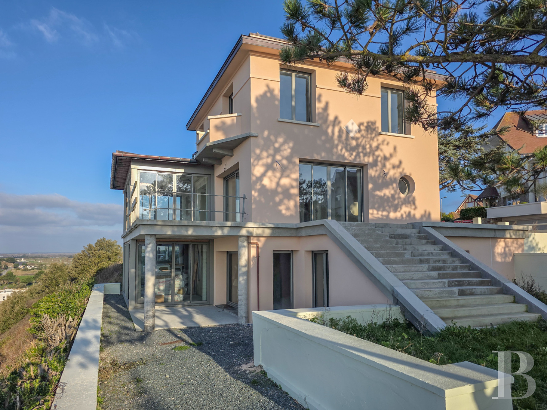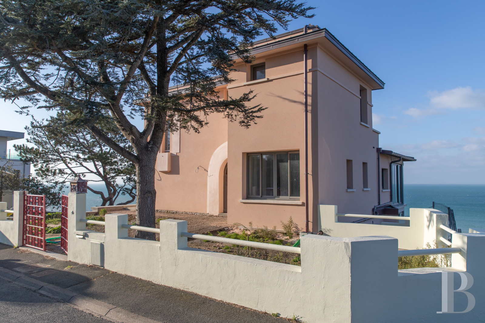 Emblematic of the 1930s, a revamped Art Deco Norman villa facing the immense blue sea. Standing on an elegant promontory at the top of the cliff, it is part of a landscape punctuated by remarkable ancient maritime pines. Its location on the outskirts of Granville, the region's famous port, is an obvious advantage, combining urban proximity with peace and quiet. The renovation of the building, carried out with the utmost care and using quality materials - in particular copper roofing - now provides a sound, sustainable foundation. The vast interior volumes and the garden remain to be interpreted as wished, leaving the future owner complete freedom of expression. Whichever vision the new owners chose, it will find a unique setting here, magnified by an unobstructed view, looking out onto the open horizon.