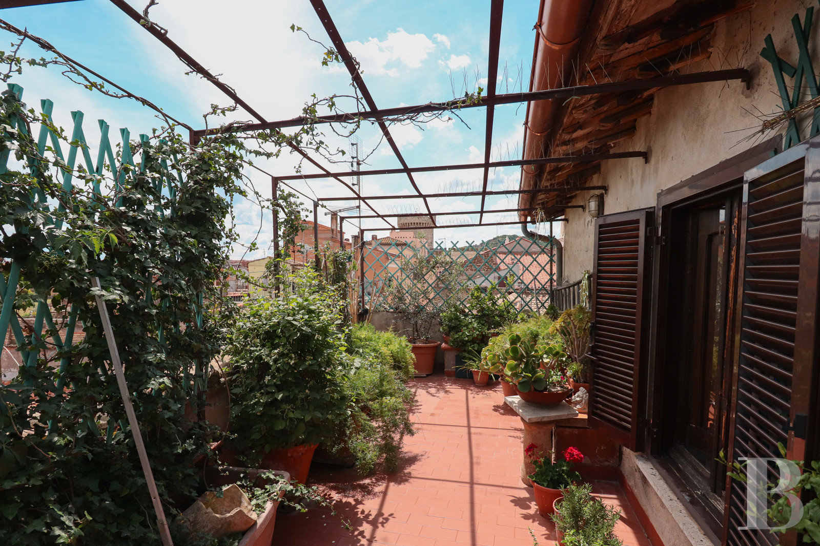 Located in the Palazzo Orsini and facing the Sabini Mountains, this penthouse apartment has retained the nobility of 17th-century patrician residences. Its coffered ceilings, terracotta floors and exposed beams evoke the unique atmosphere of a historic urban residence, both imposing and lived-in. Spread over three levels and crowned with a 90 m² panoramic terrace, the property is ideal for those seeking the authenticity of a period home or those wishing to create a unique residence in the heart of Fiano Romano. Less than half an hour from Rome and its museums, it could easily become a primary or secondary residence, both rooted in village life and close to the attractions of the Italian capital.