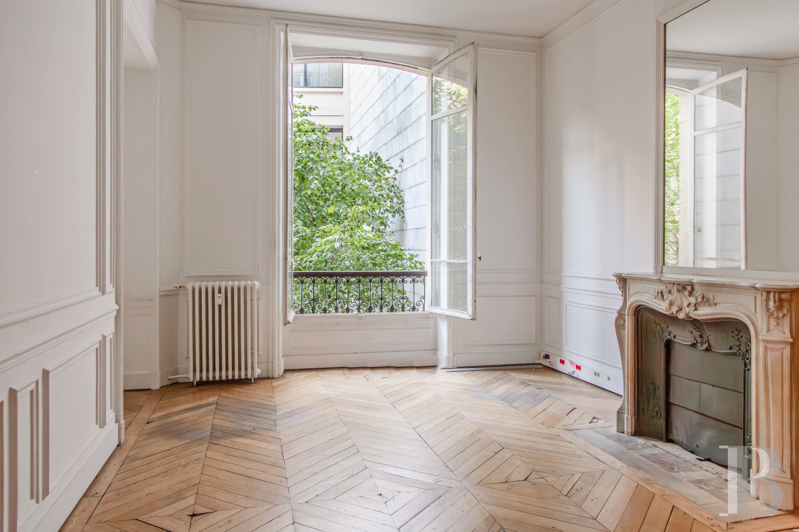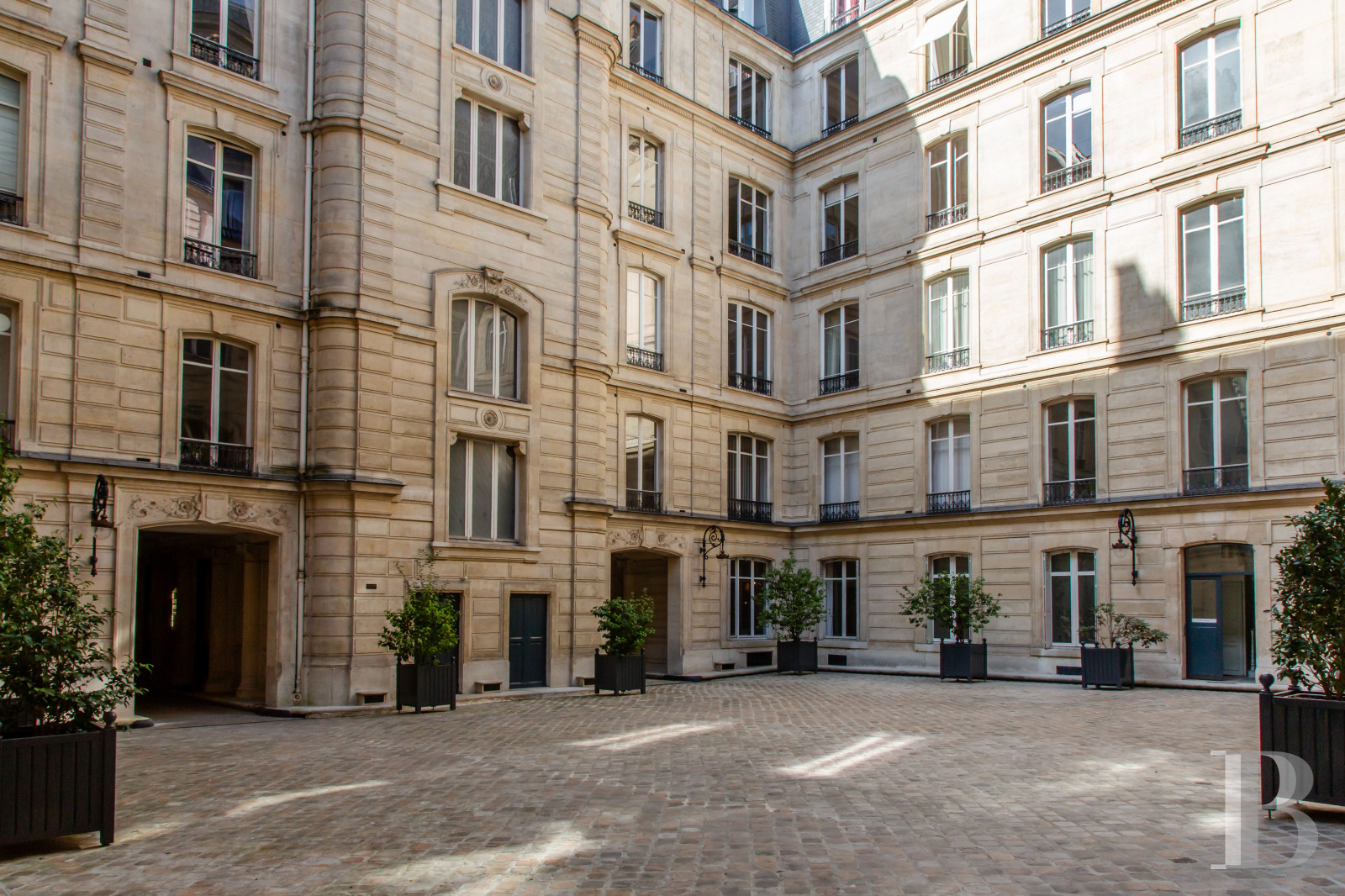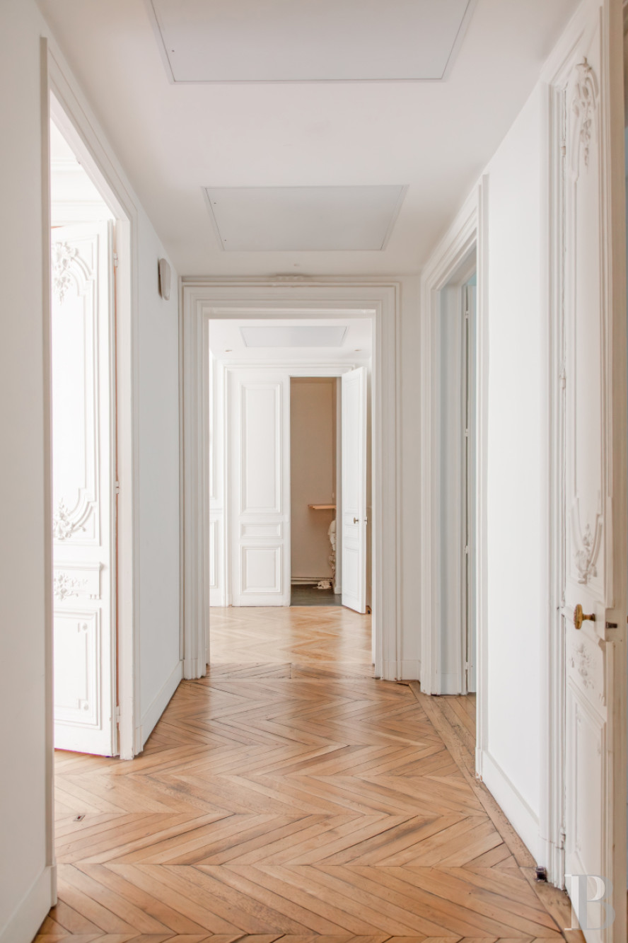 This spacious apartment on the noble floors of a remarkable ashlar building boasting elegant communal areas is situated in the 8th arrondissement of Paris, which is the part of the French capital most emblematic of Haussmannian architecture, between Place de la Madeleine and Parc Monceau, in the heart of the business district, which is the veritable epicentre of French economic power. The peaceful setting, between the courtyard and garden, provides plenty of discretion. The impressive ceiling heights and vast rooms make this a luxurious reception apartment. In its current guise, it is used as prestigious offices and could also serve as a very comfortable workspace for its future occupants.