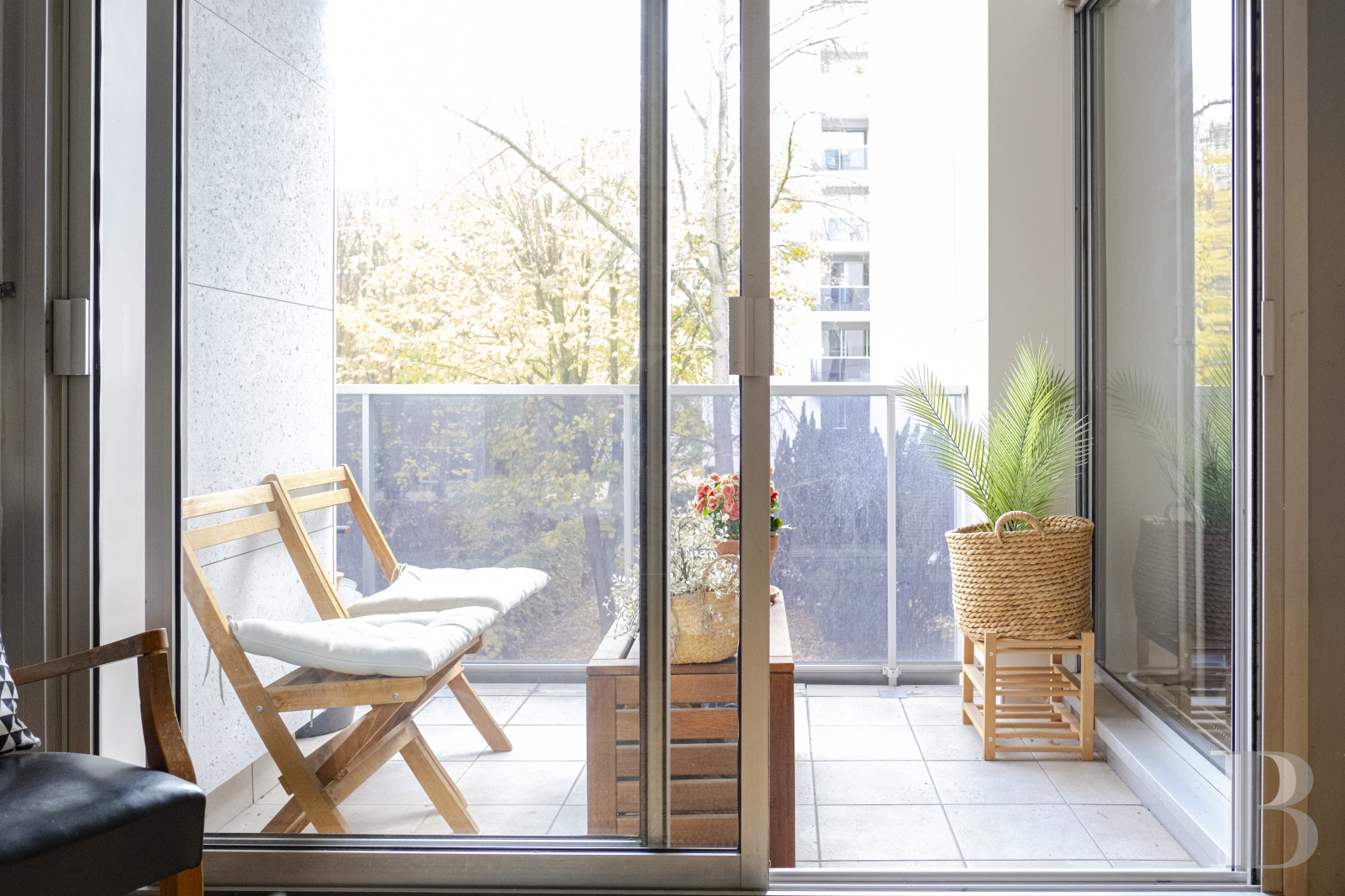 As for the flat, located on the third floor and accessible via two lifts, its front door gives on to a main room, which is arranged around a loggia looking out over the commonhold property’s garden. On one side, a fitted kitchen opens on to a dining room area, located in the middle, followed by a living room, while the conservatory, as well as a large window, provide ample sunlight.