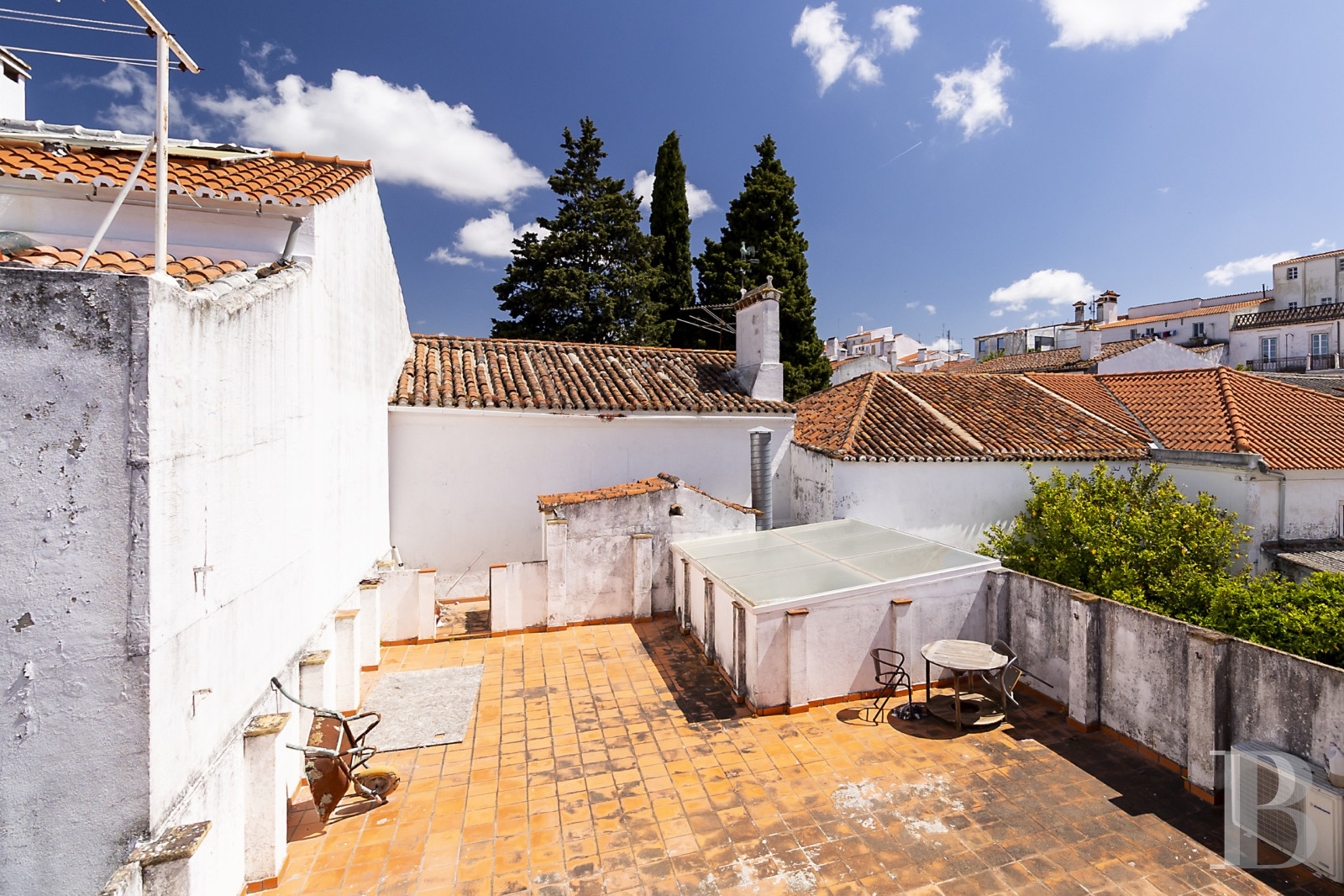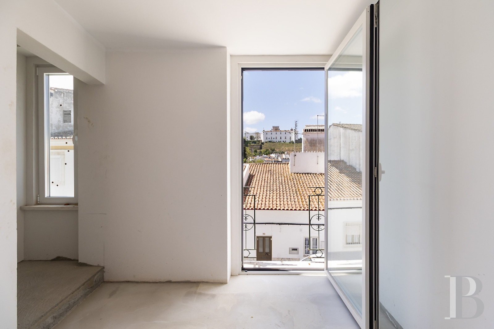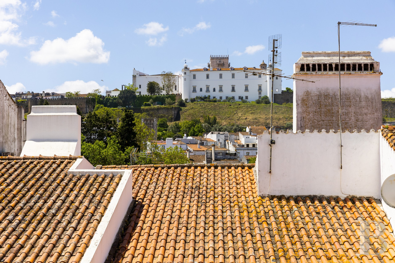 The Casa dos Encarnados hosted meetings and concerts in the early 20th century. Artists performed there, and regulars returned. The ground floor retains its vaulted ceilings and original rectangular marble flooring. Later, a couple reopened the bar, recreating this atmosphere of music and friends. Today, the 766 m² property awaits its next life. The two upper floors have been restored: insulation, new door and window frames, double and triple glazing, and new installations. The duplex is being sold unfinished, allowing for personal choices of materials. The terrace on the first floor offers a view of the castle. A small adjoining house, with a separate entrance from a cypress-lined square, connects to the former bar and terrace. The property can remain as one unit or be divided: shop downstairs, duplex, detached house. Estremoz is renovating its centre, and the Rossio is a three-minute walk away. A place steeped in history, ready for a new chapter.