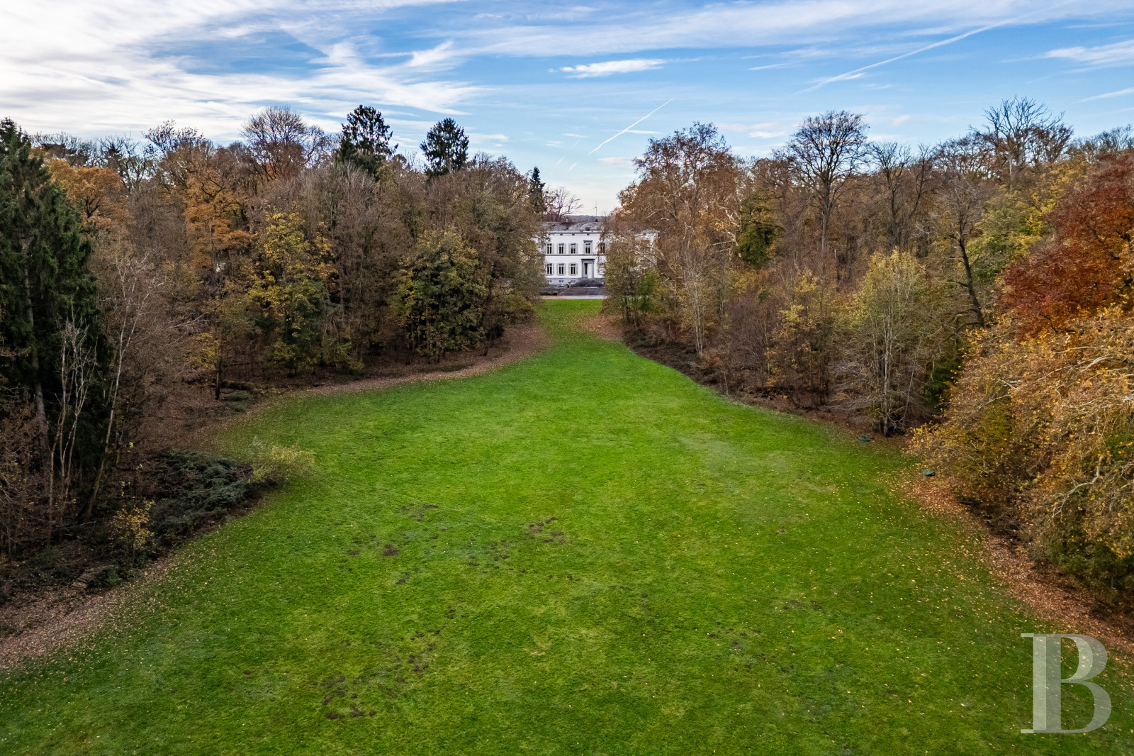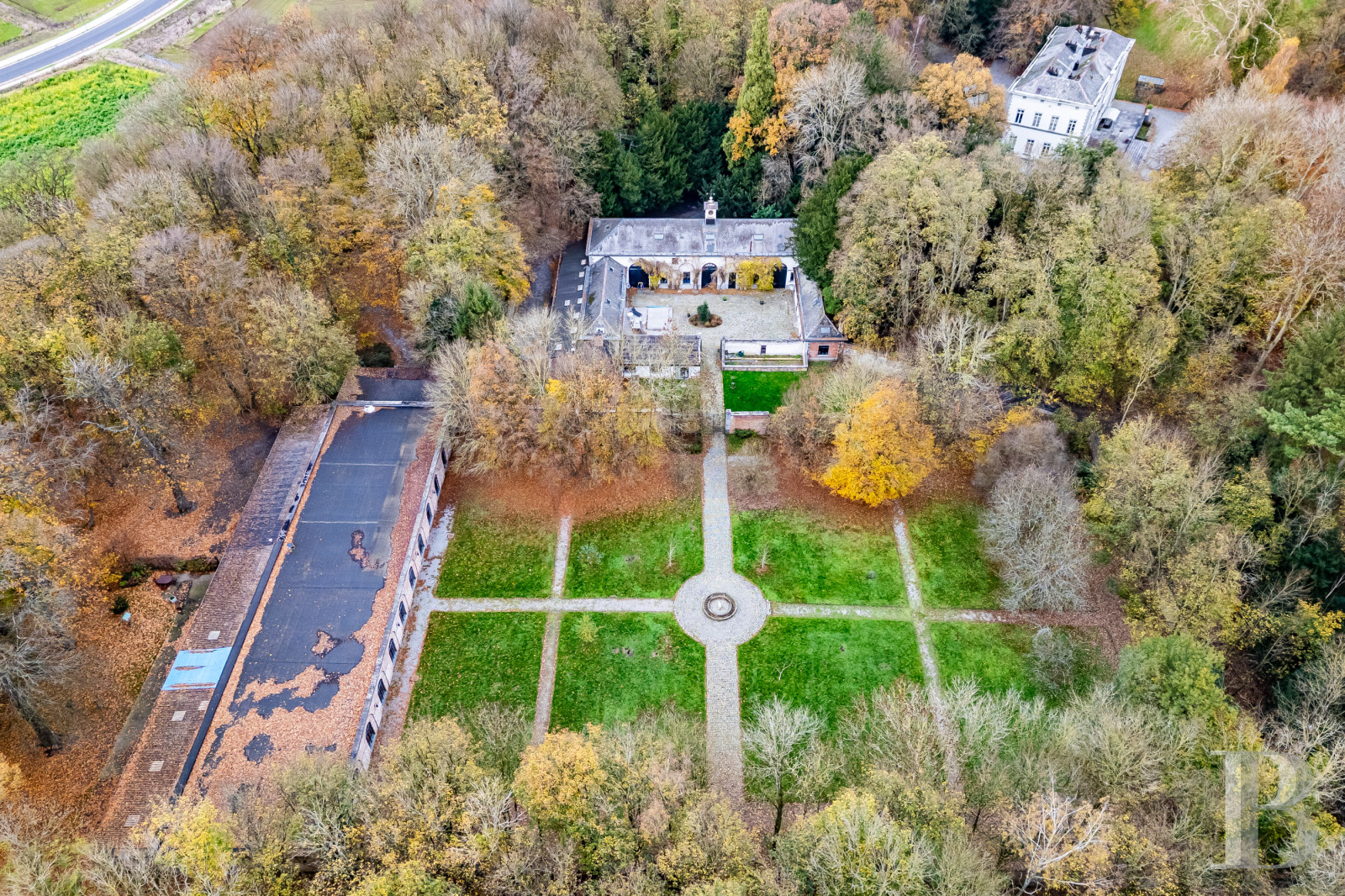 a castle and its outbuildings on a 36-hectare estate with a pond.