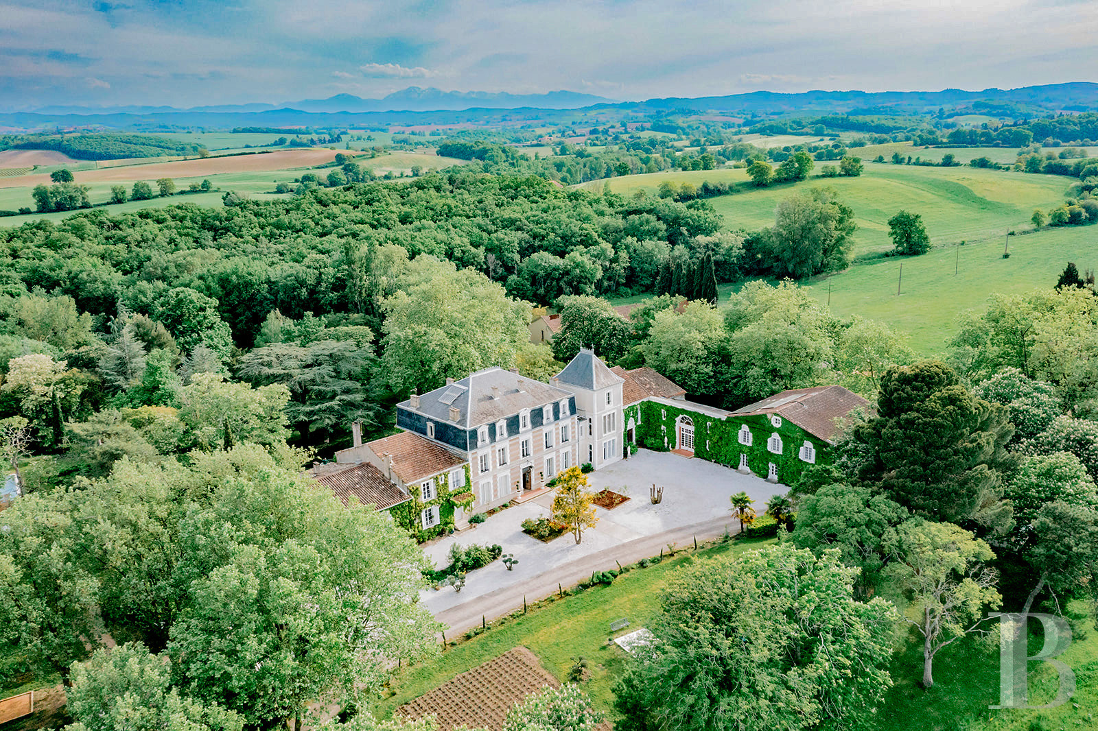 There are also several outbuildings to the immediate right of the chateau, including a barn, a winery and a stable. Set in 32 hectares of parklands, meadows and woods in a dominant position, the chateau is protected from all forms of disturbance.